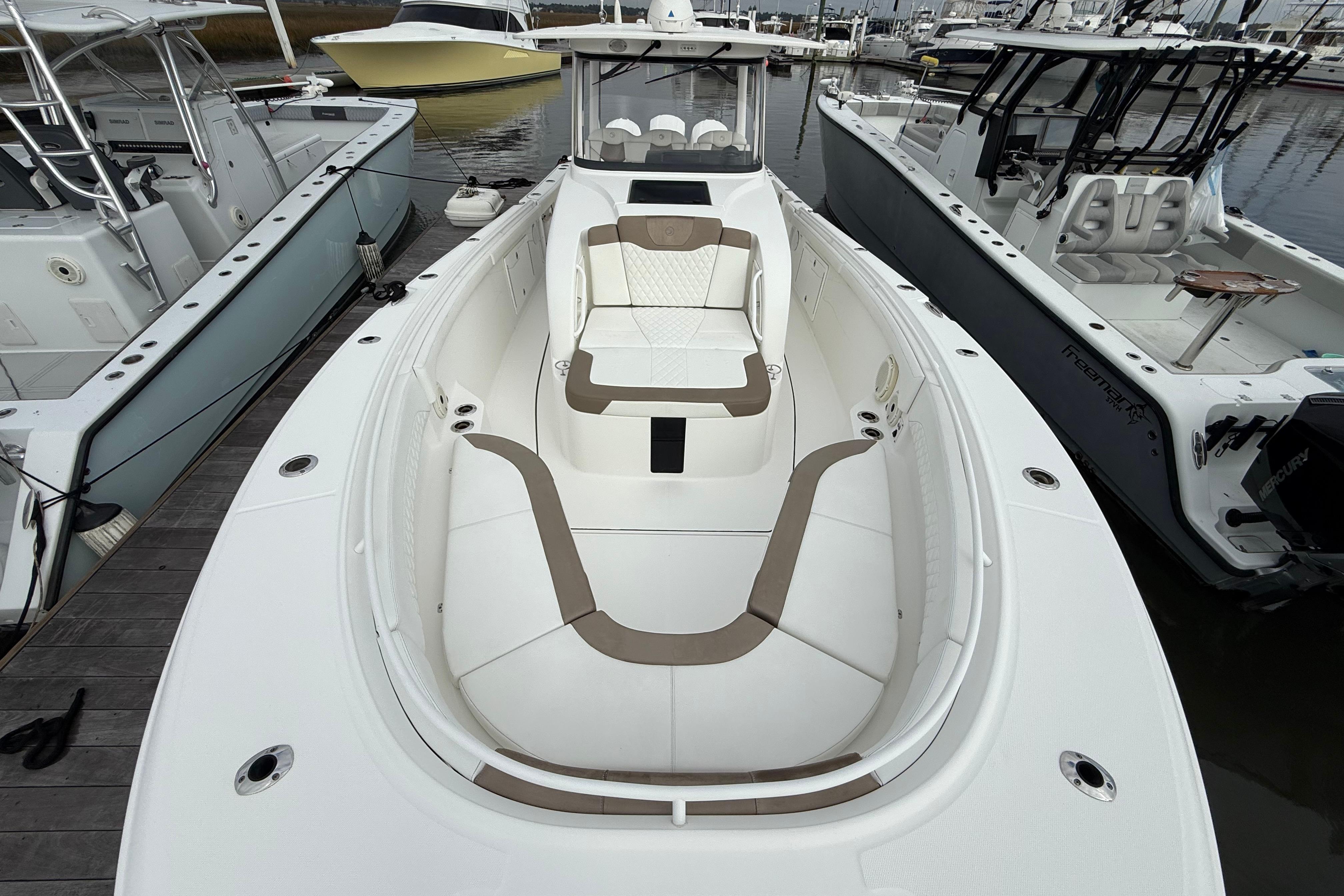 You will not find a more heavily loaded Edgewater 370 CC anywhere. Only 148 engine hours on reliable triple Yamaha 300 outboard power. Joystick steering and a bow thruster make maneuvering in marinas a breeze. A double stepped hull provides a fantastic ride while its stand up cabin offers abundant overnight accommodations. The 370CC is an offshore battlewagon which also offers family friendly cruising amenities like a BBQ grill, a diesel generator, cabin air conditioning and abundant forward and cockpit seating. Easy to see only 20 minutes from Charleston International Airport. Notable features include;