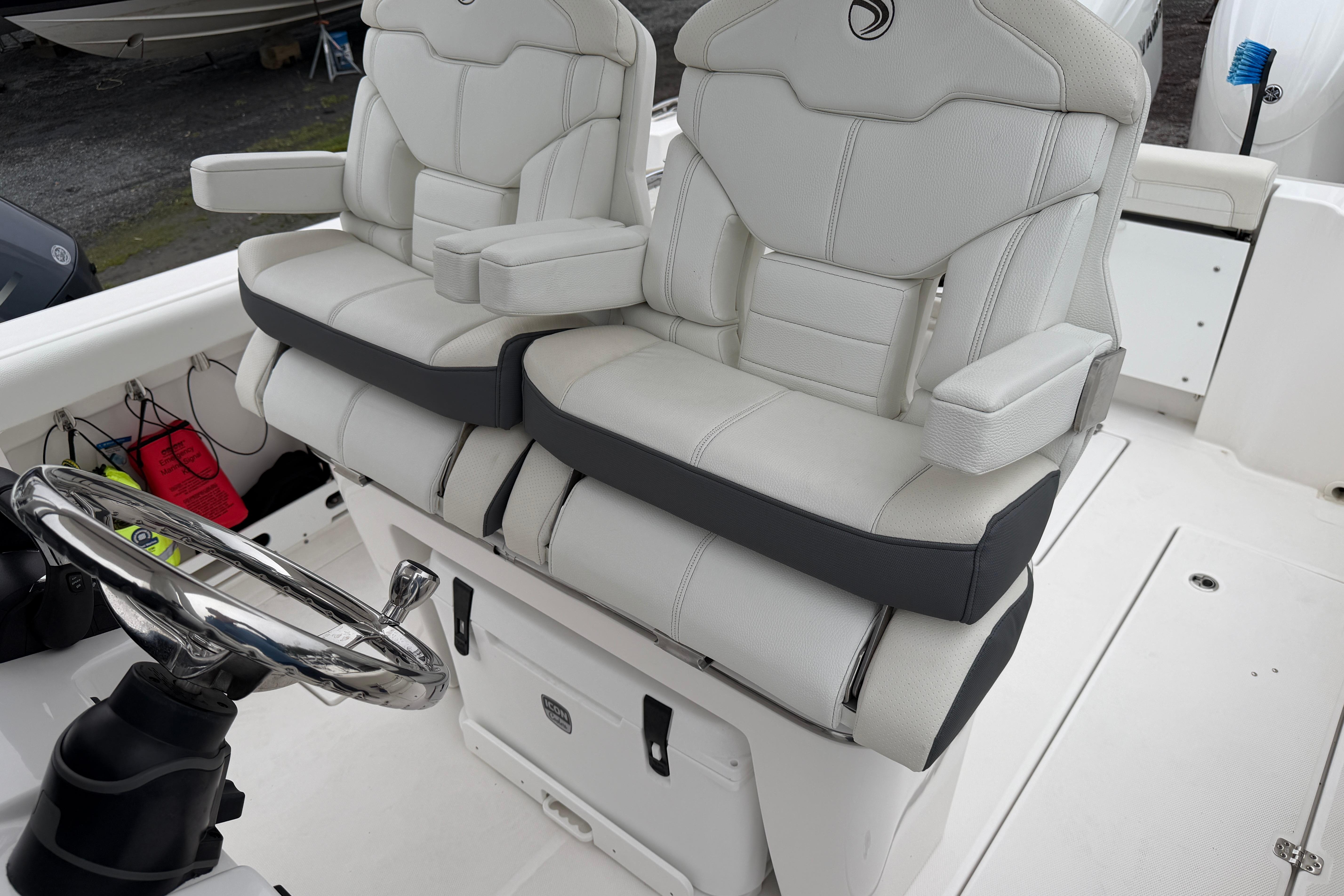This beautiful Ice Blue Edgewater 262CC is just LIKE NEW! With only 60 hours, she\’s barely broken in. She has the twin 200 Yamaha (warranty through 9/26/2028) Full Maneuverability Joystick control and SeaKeeper Ride system and she is equipped with the following options: Aft Leaning Post Pre Station w/sink, Dual Garmin 8612s w/B75 transducer, Garmin 215VHF and remote Mic, GXM Sirius/XM Weather, Retractable Ski Post, Reverso Outboard Flushing System and Fusion Stereo w/JL Speakers.