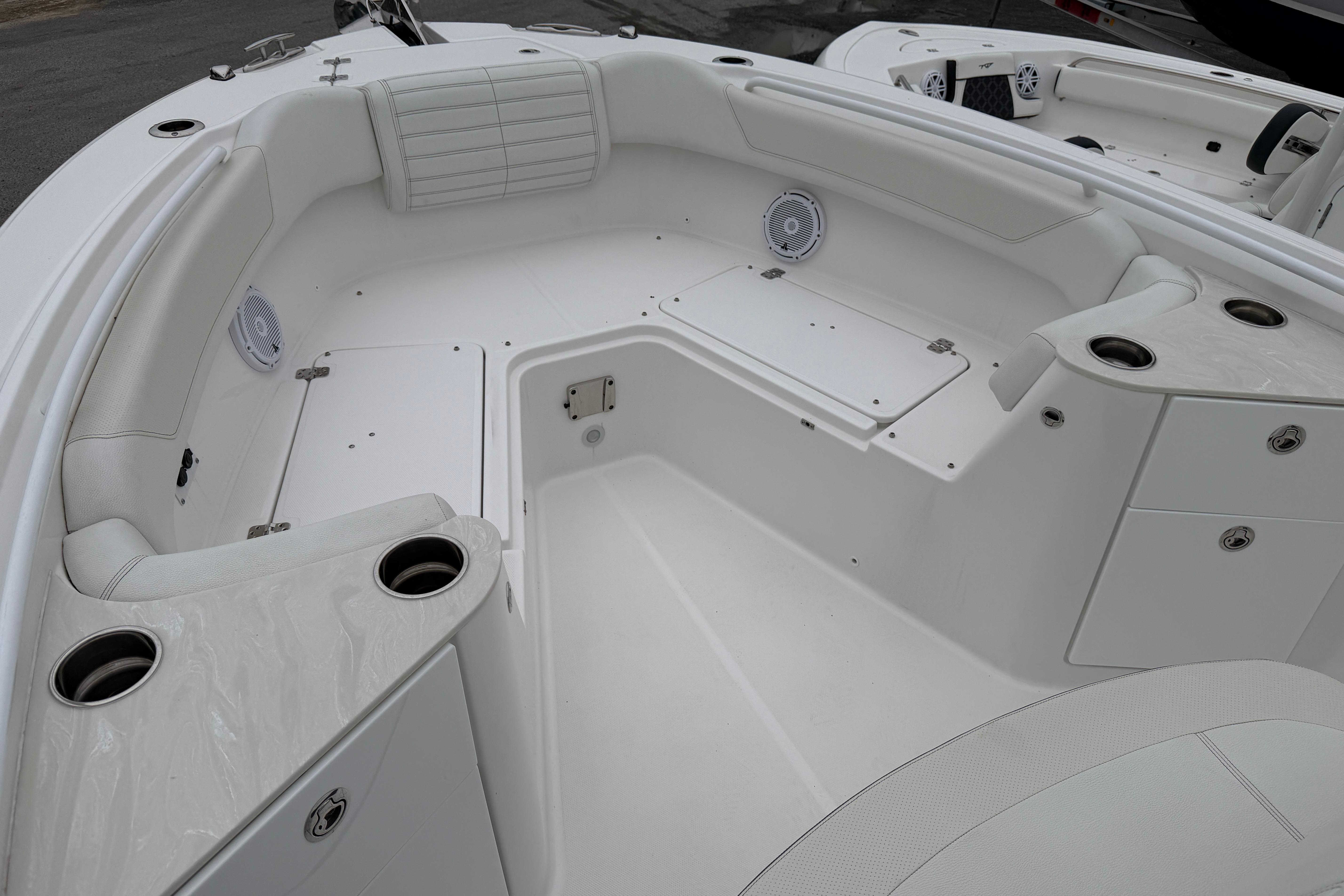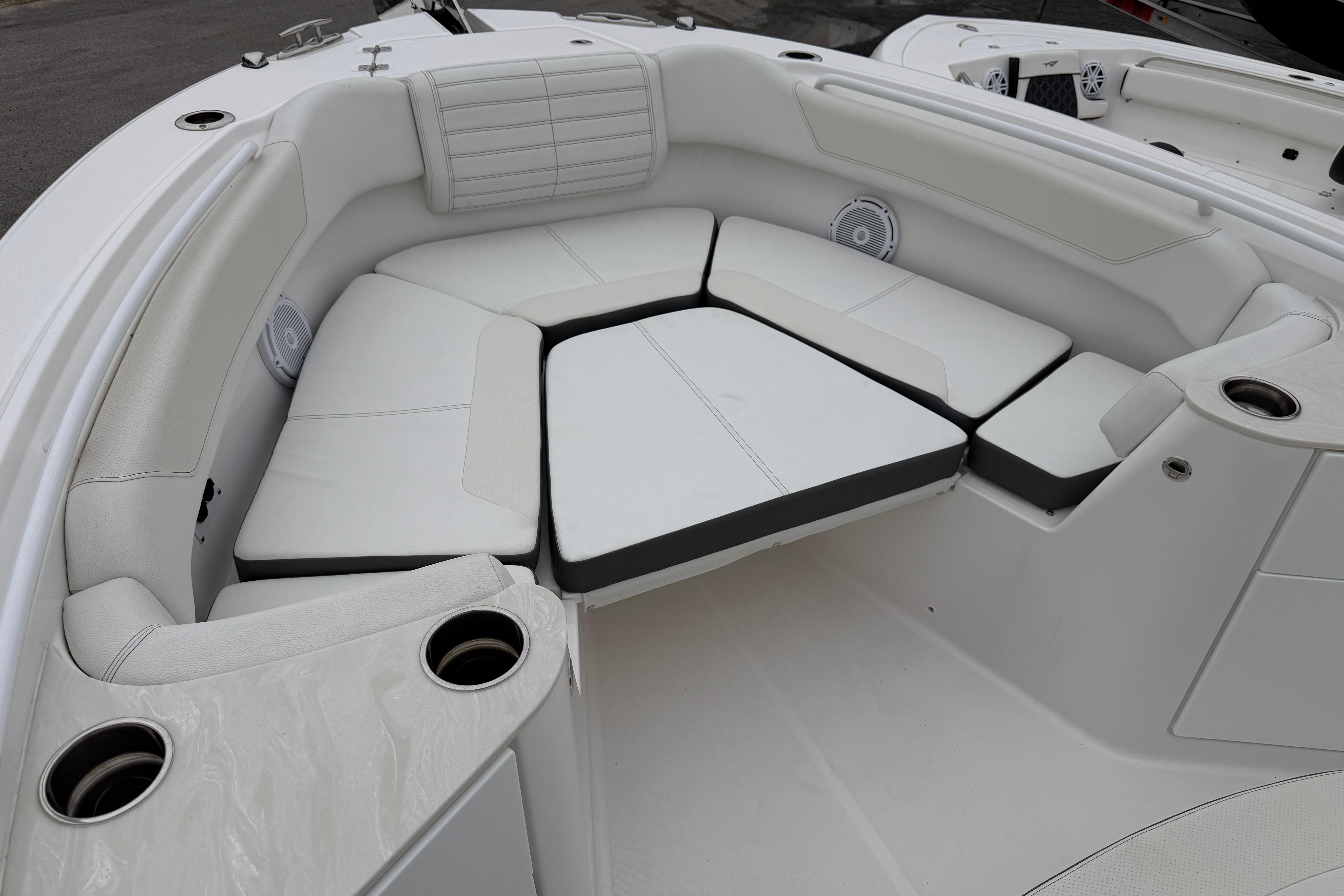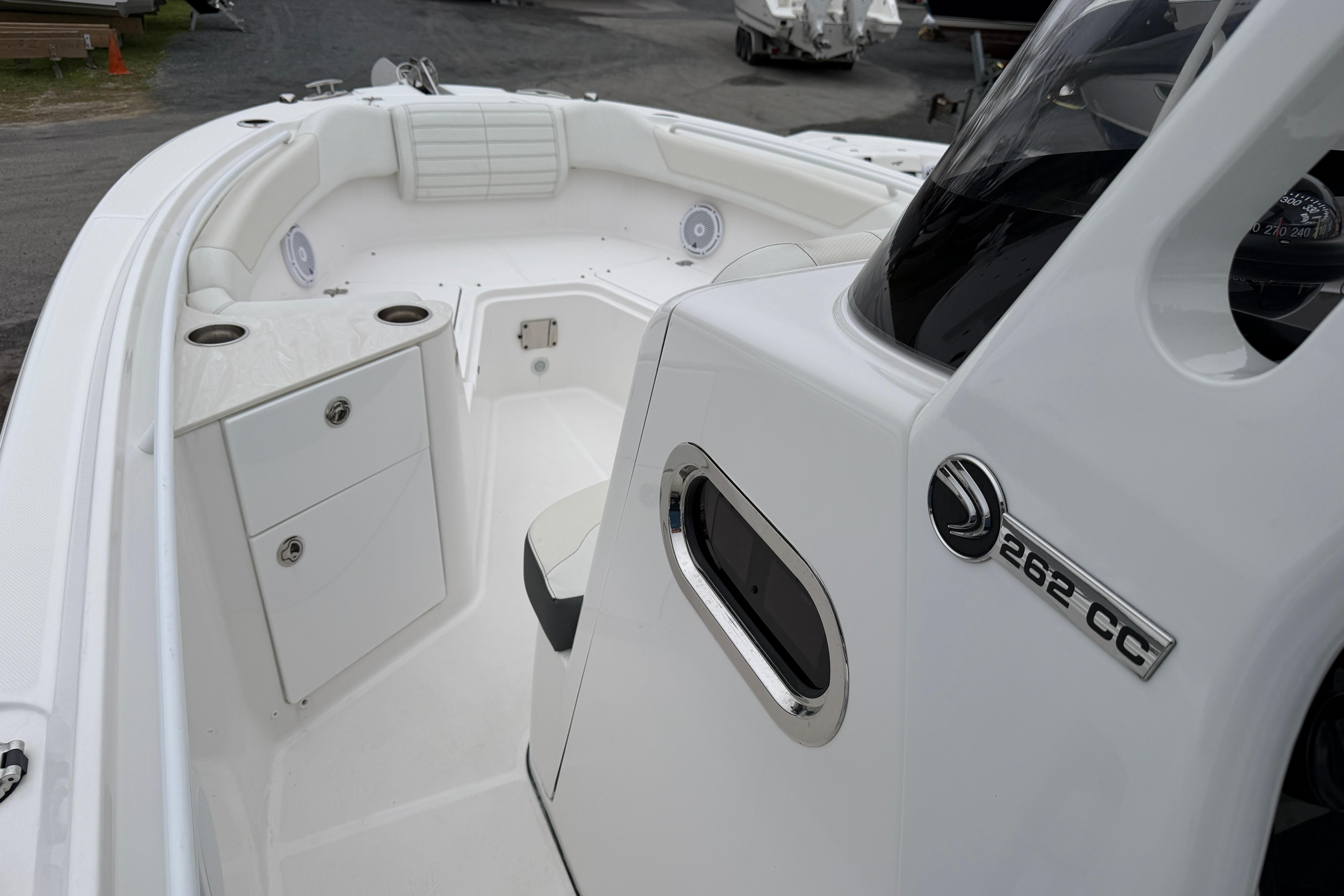 This center console lets you know in a big way that rugged is standard with the offshore boats of Edgewater. A smooth, stable ride and capable performance makes the 262CC one of the top offshore boats available on the market today. A powerful deep-V hull, unsinkable Single Piece Infusion construction and up to 500 hp from twin Yamaha outboards, make all jobs for these offshore boats a breeze. Fish or cruise in comfort with a walk-in console complete with head, sink, shower and extra storage.