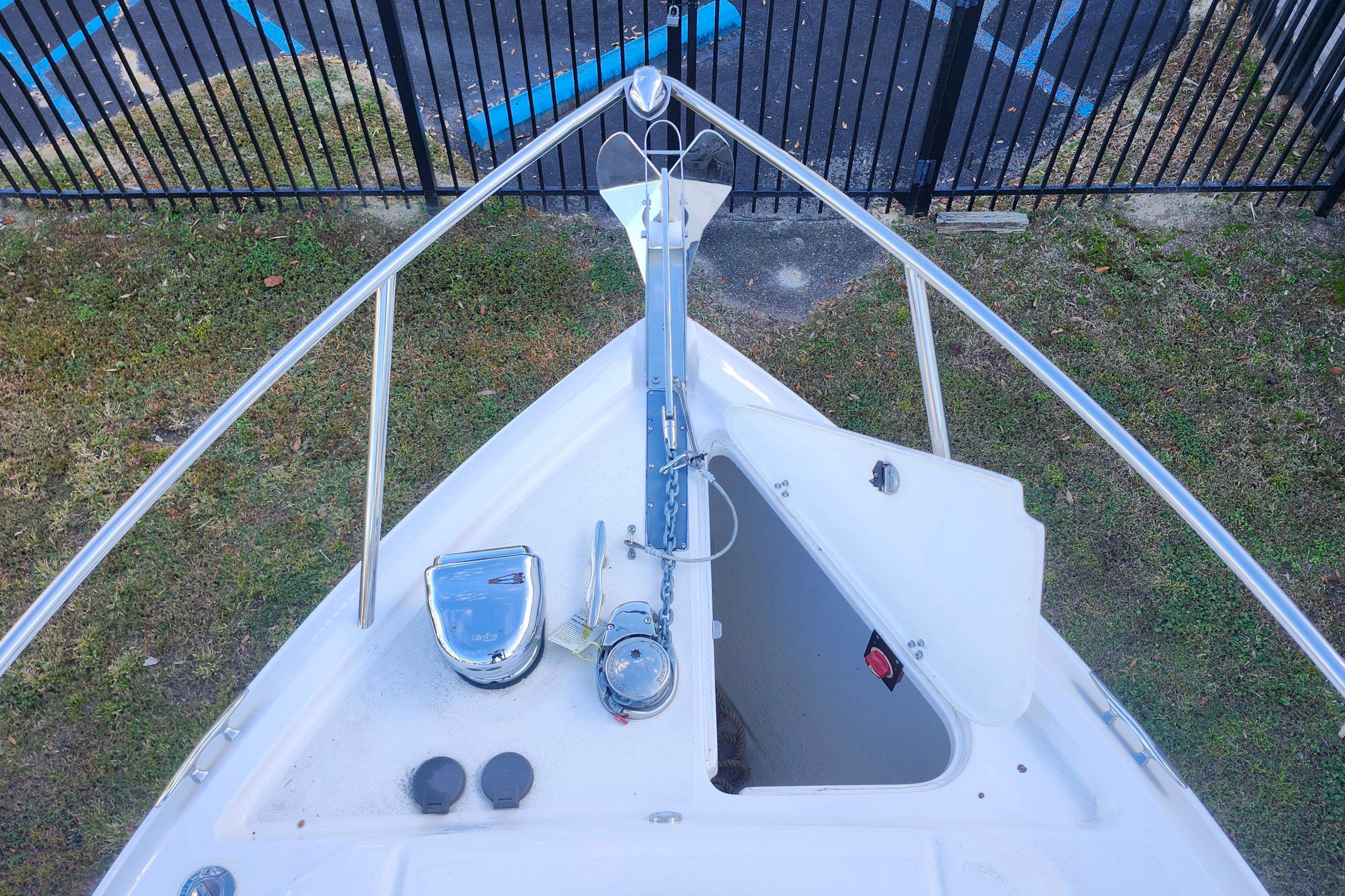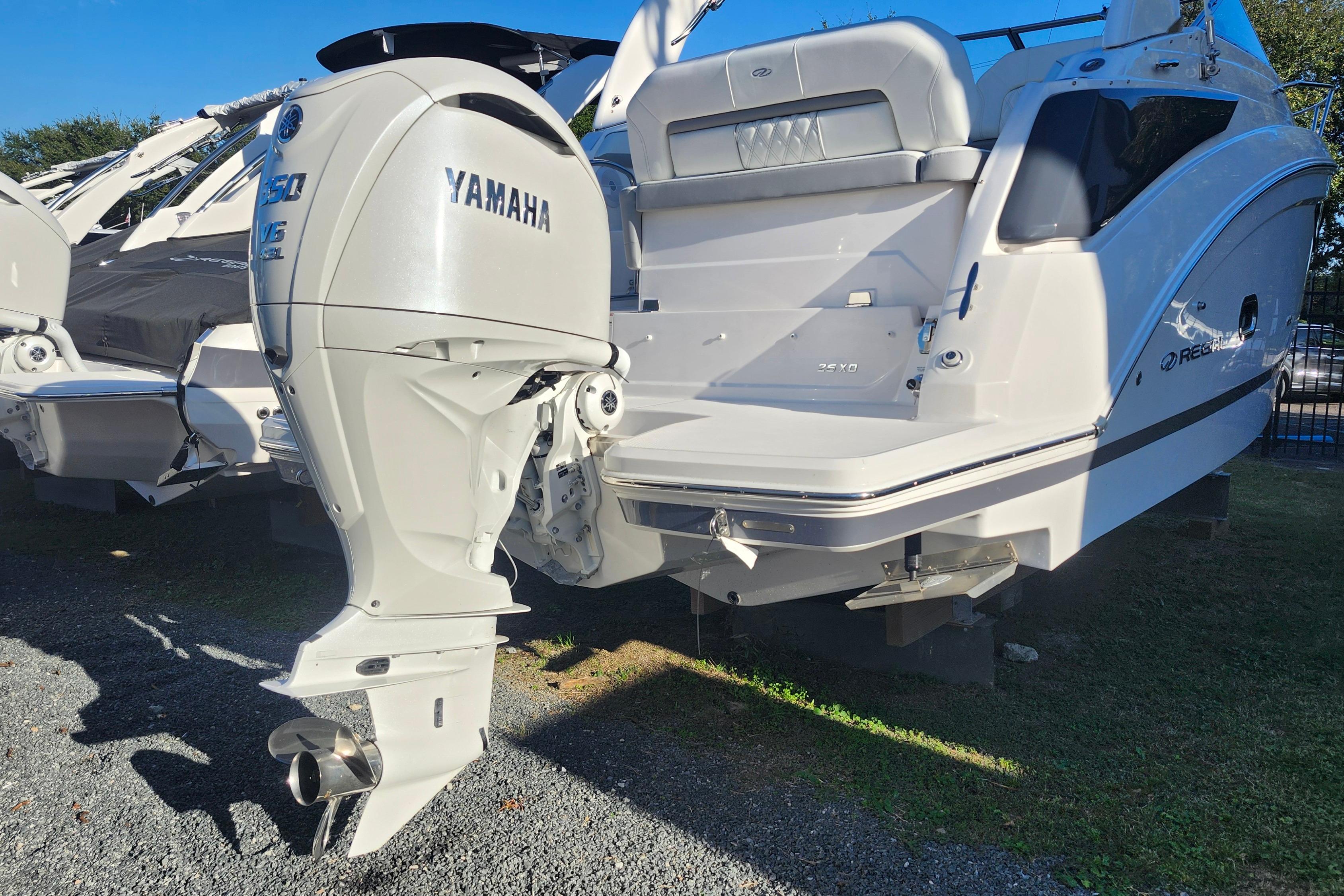 This 2025 Regal 26 XO is powered by the Yamaha F350 digital white engine. It is white with graphite bootstripe and titanium interior. Options include White PowerTower, cockpit cover, camper full enclosure, gas generator, AC with reverse heat, hot water heater, power package (including shore power, battery charger, outlets, microwave and electric stove), electric toilet with pump out fittings, foredeck sunpad, anchor windlass, rod holders, windshield wiper, cabin TV, Garmin VHF and Garmin 943xs with B60 transducer.