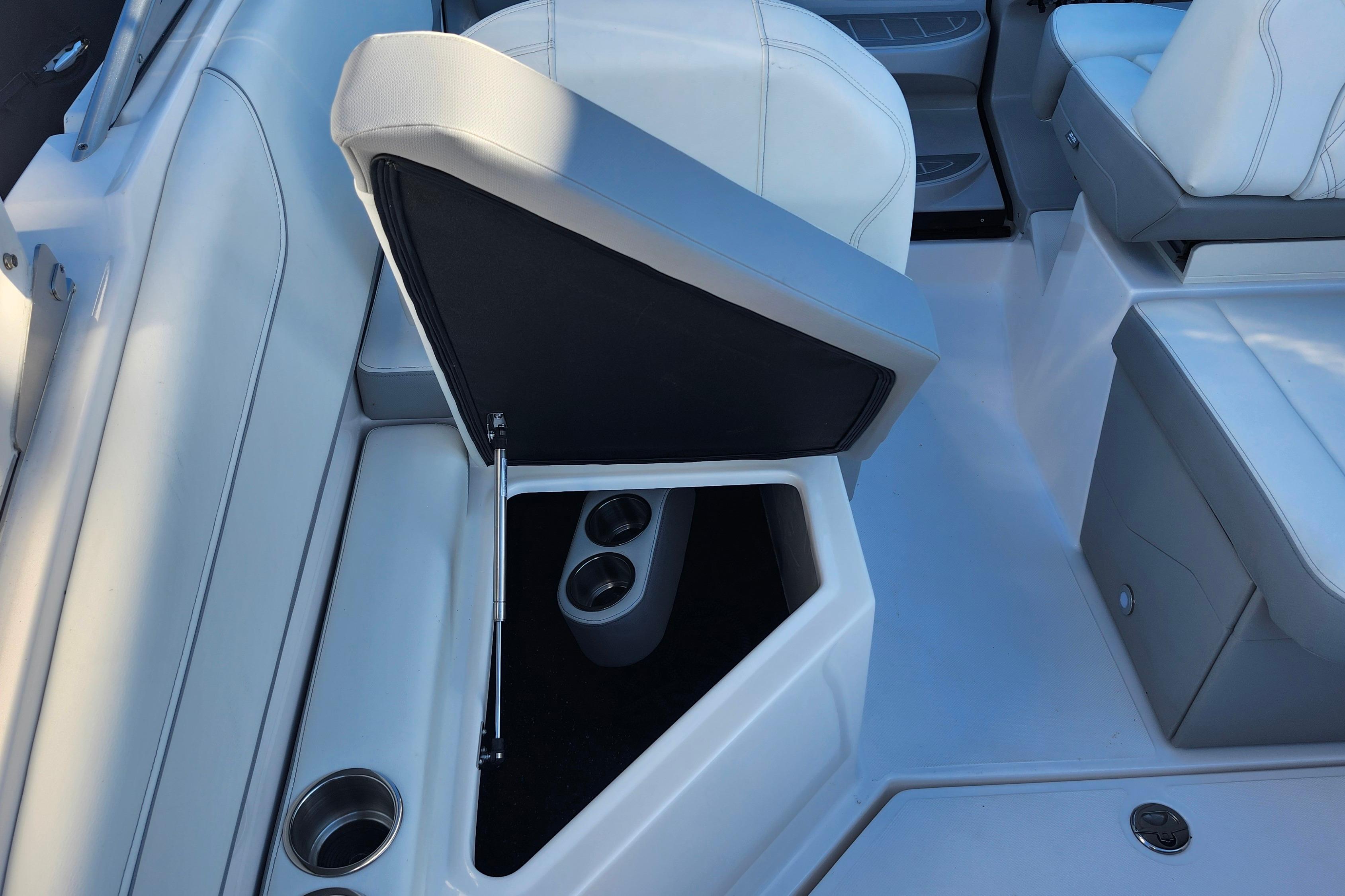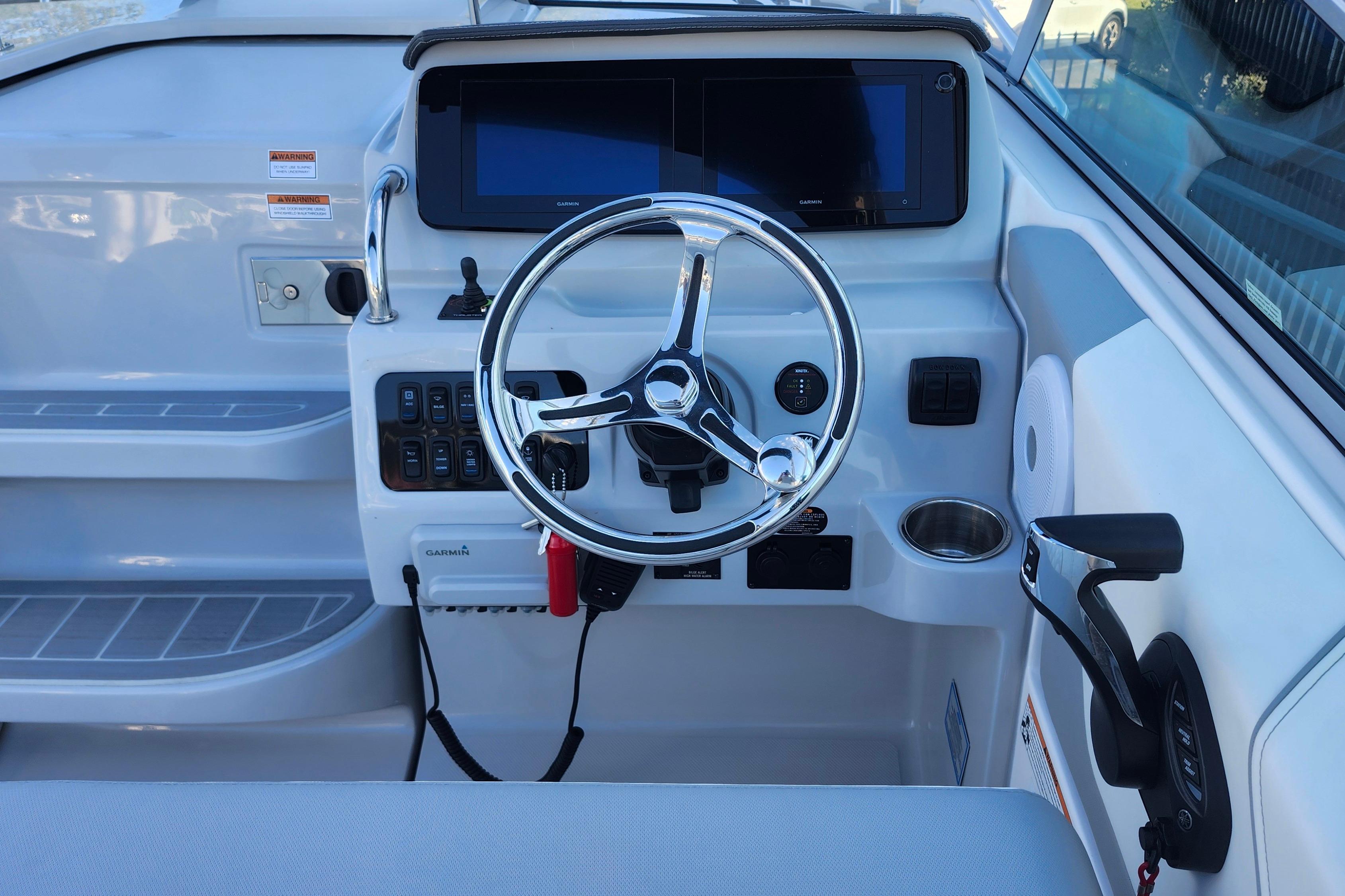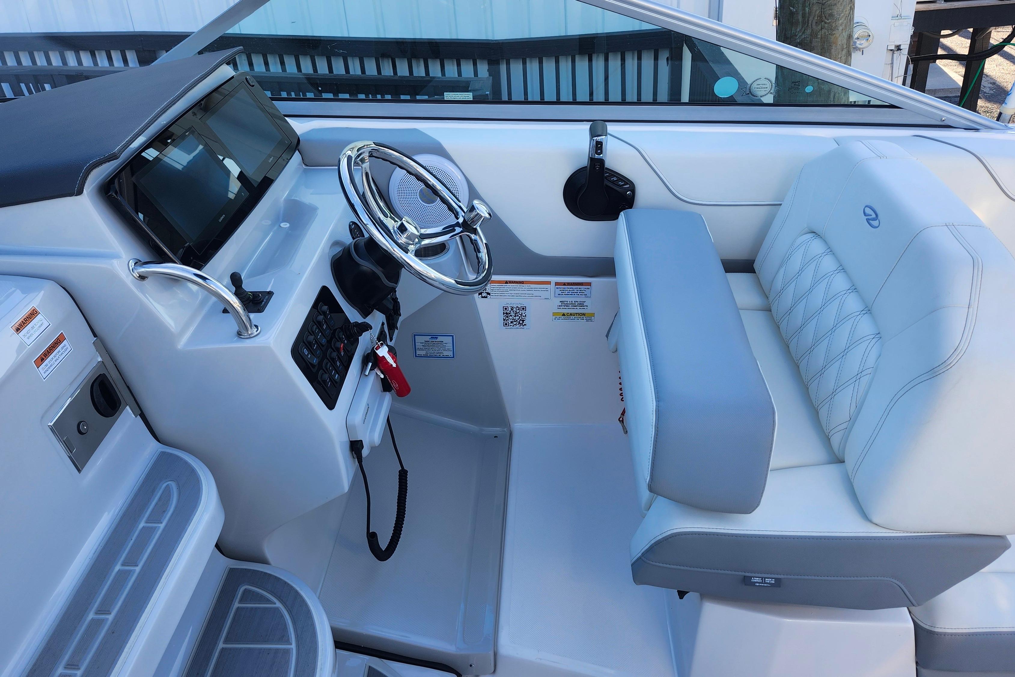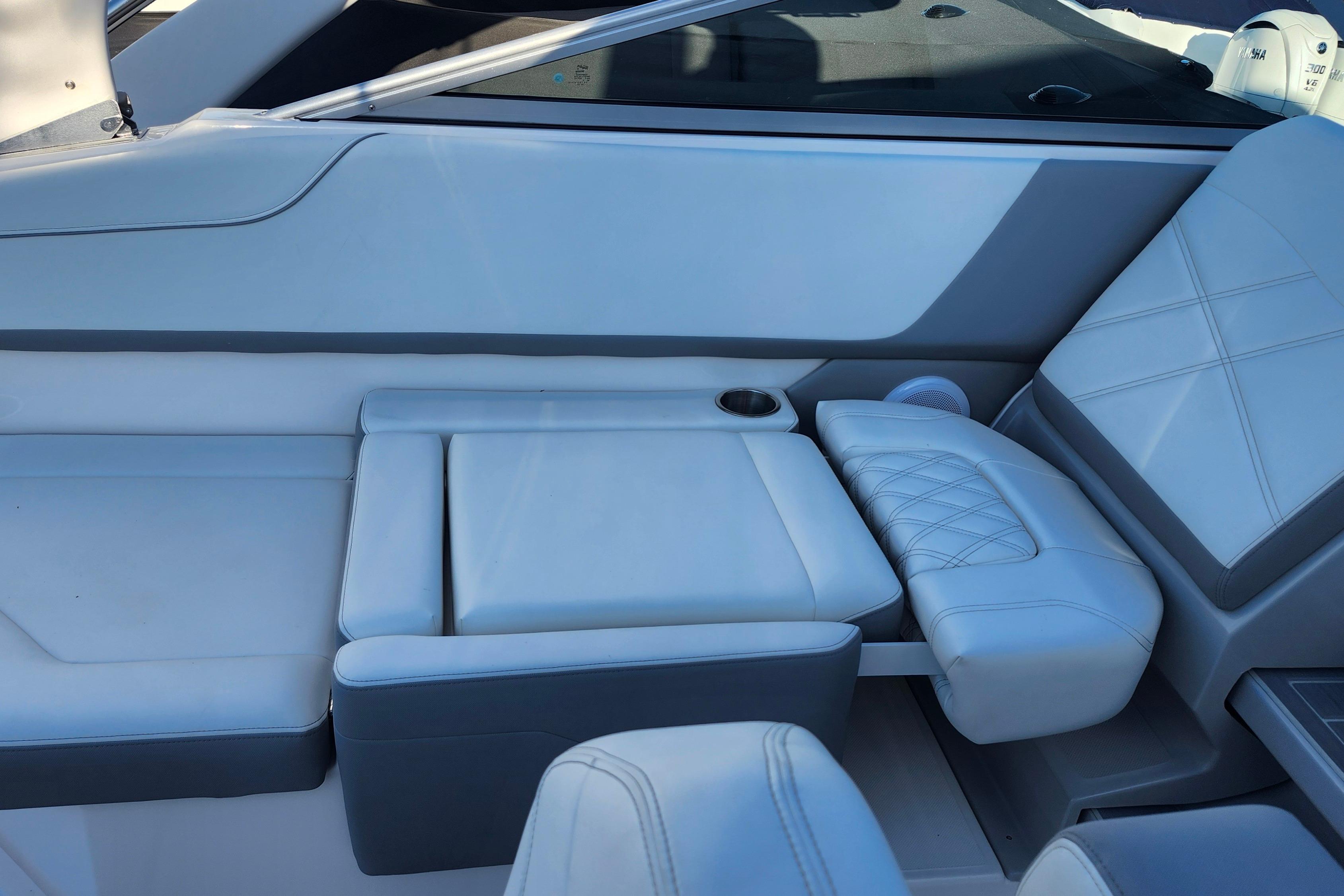 Standard features include bow thruster, Fusion Bluetooth stereo, transom shower, trim tabs, refrigerator, dual battery switch, electric steering, dual battery switch and dual Garmin 943xs GPS. Built for ultimate versatility with details crafted to elevate your boating experience, the 26 XO achieves a higher standard of excellence. With ample space and comfort awaiting you in the cockpit, below you will find hospitable amenities and accommodations designed to keep you and your guests refreshed and relaxed all day long.