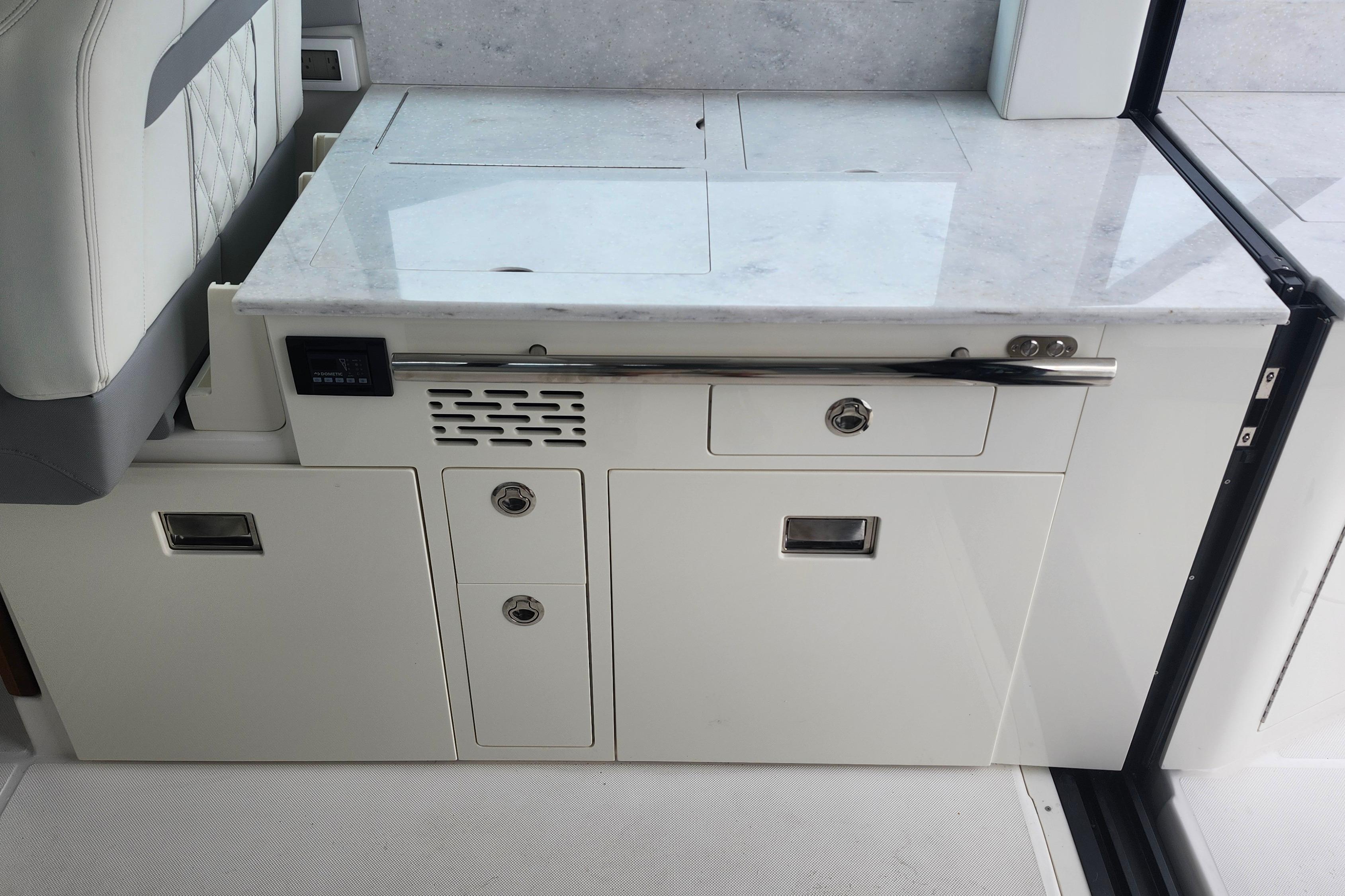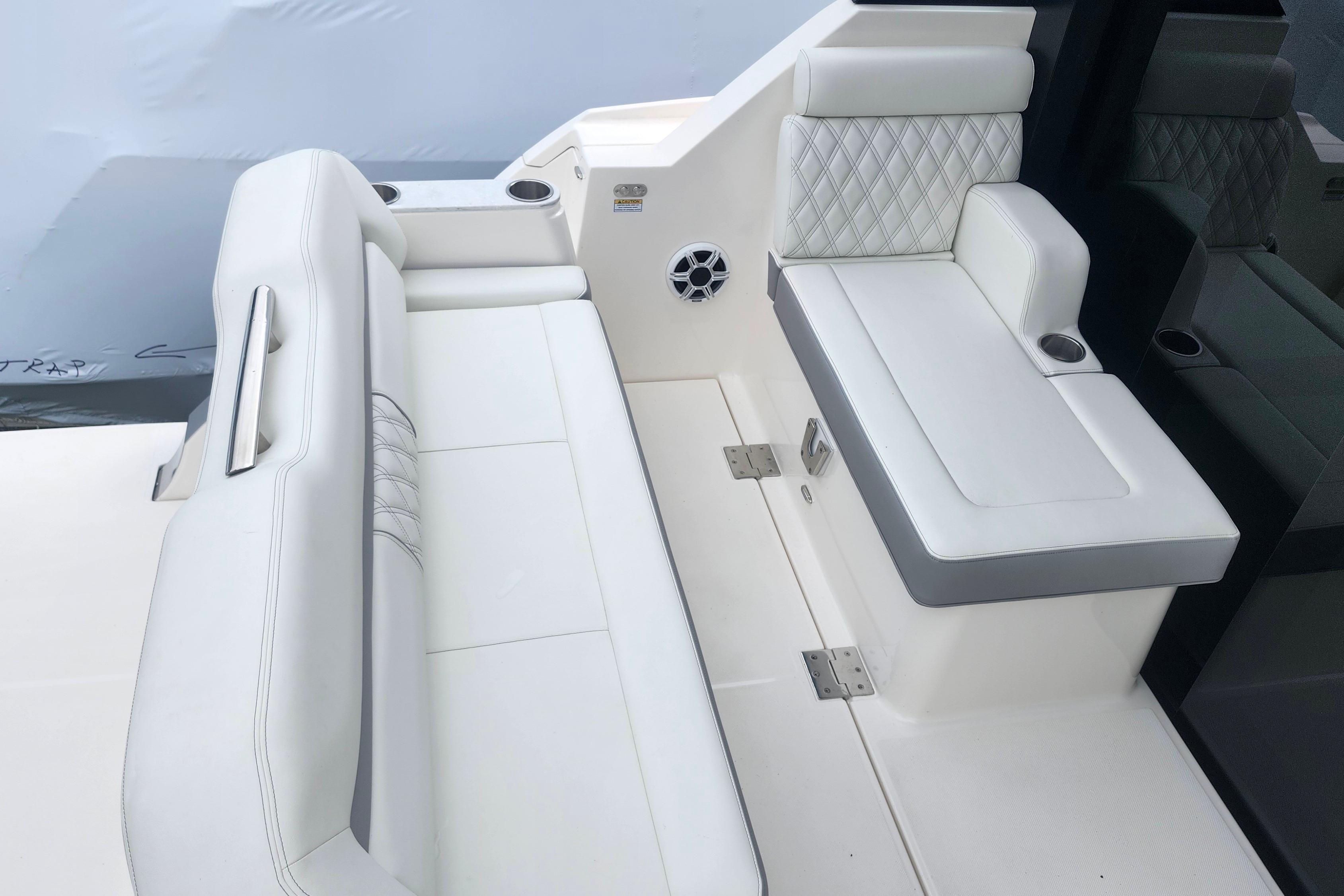 The 36 XO is the total package, providing space for any activity. Soak up some sun in oversized bow seating, get cozy below in the California Queen and spacious settee, or pull into port and get ready for a night on the town after freshening in the elegant walk-in shower. From multi-position seating to additional legroom in the aft, there’s plenty of space to spend an exciting weekend away with family and friends.