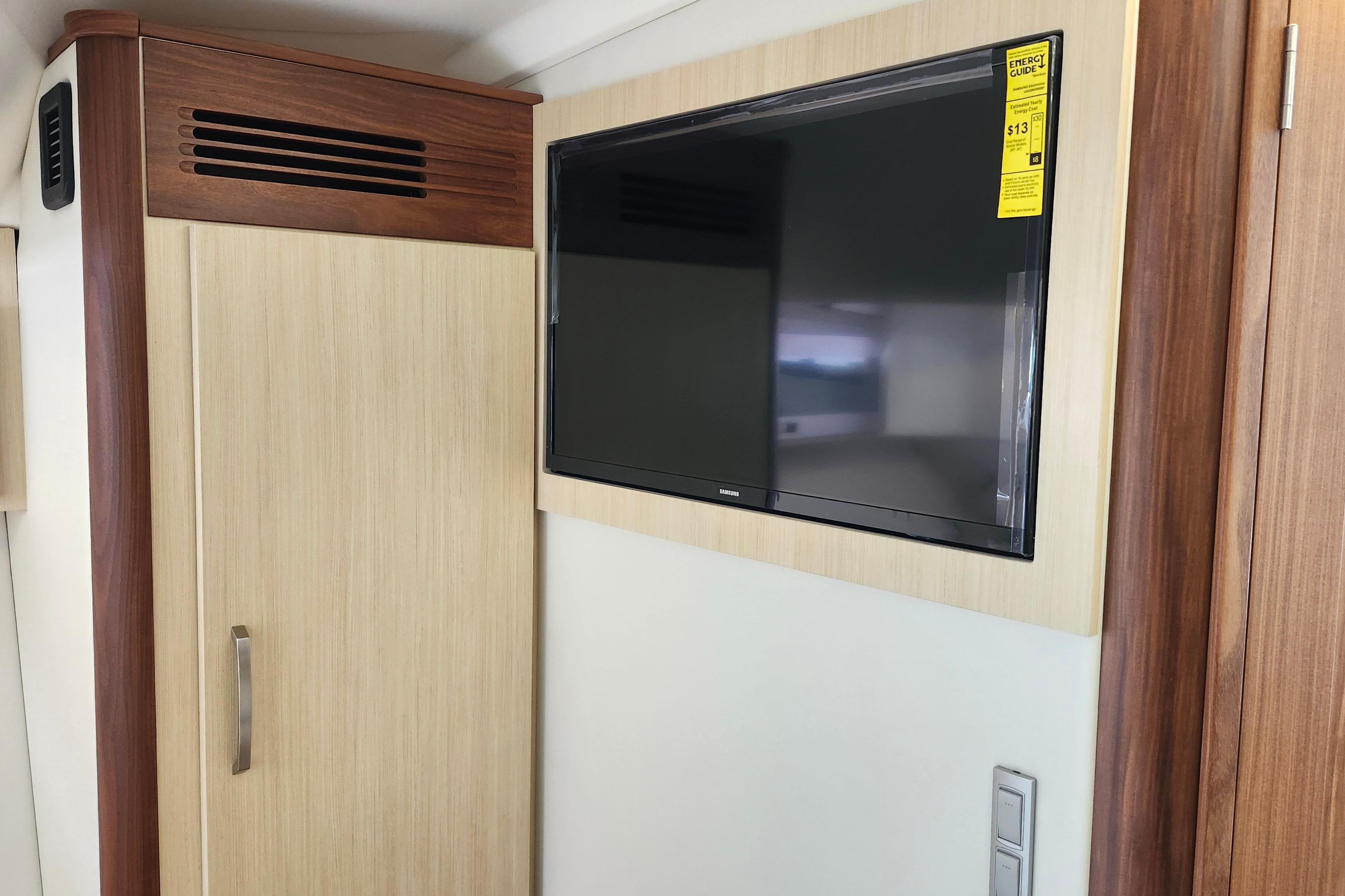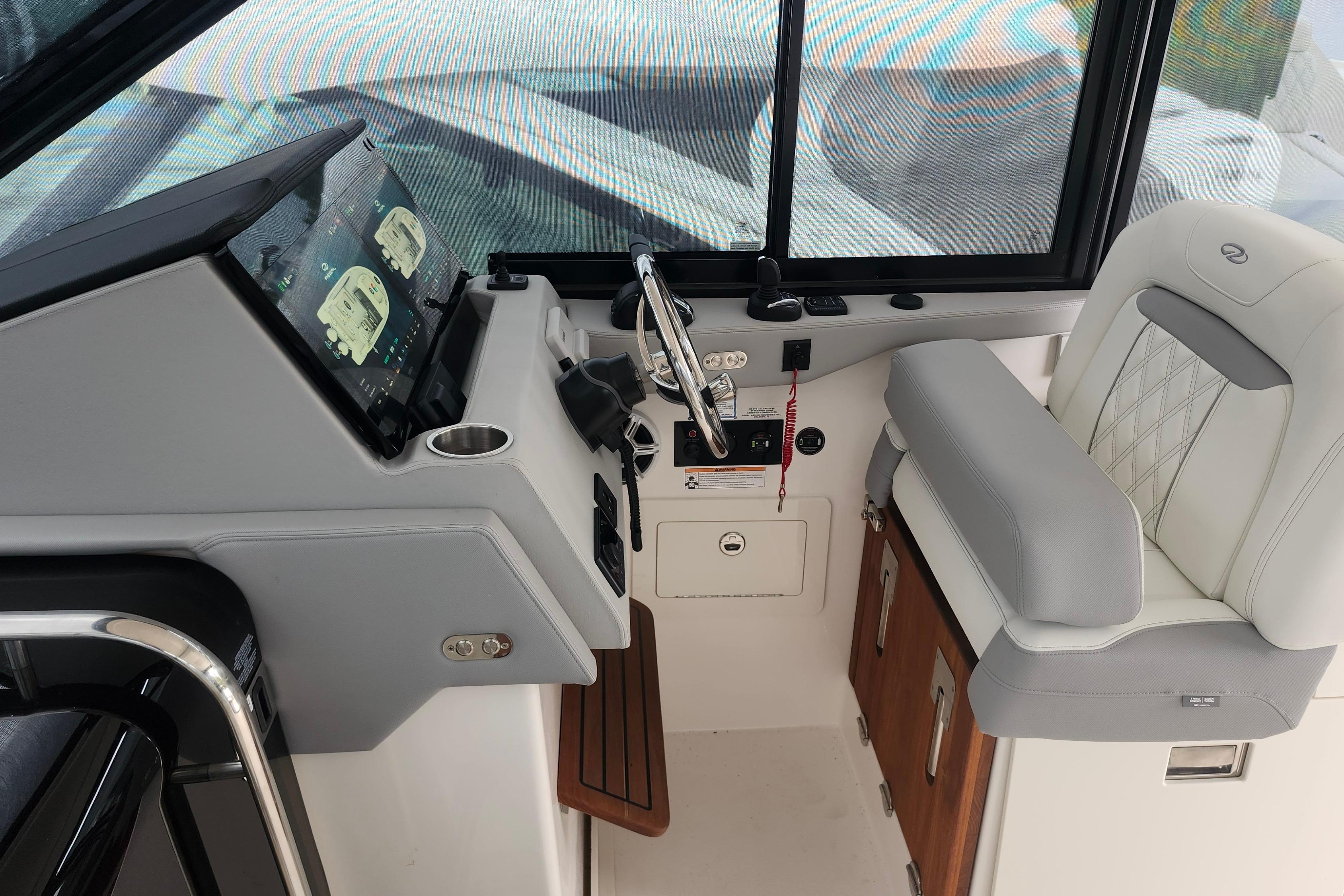 This 2026 Regal 36 XO is available now. It is Steel Gray with Mediterranean Blue boot stripe with titanium interior. It is powered by twin Yamaha V8 F450s with autopilot and Yamaha joystick. It is loaded with standard features such as diesel genset, digital switching, bow thruster, anchor windlass, Garmin VHF, RGBW lighting, cockpit fridge and electric grill. Options include manual bow sunshade, transom seat covers, windshield privacy cover, central vacuum, toilet overboard discharge, fender clips, electric salon doors, wireless remote for windlass, window tint, portlight and cabin windows, Garmin closed array radar, mid cabin TV and dual Garmin GPS8616xsv with B60 transducer.