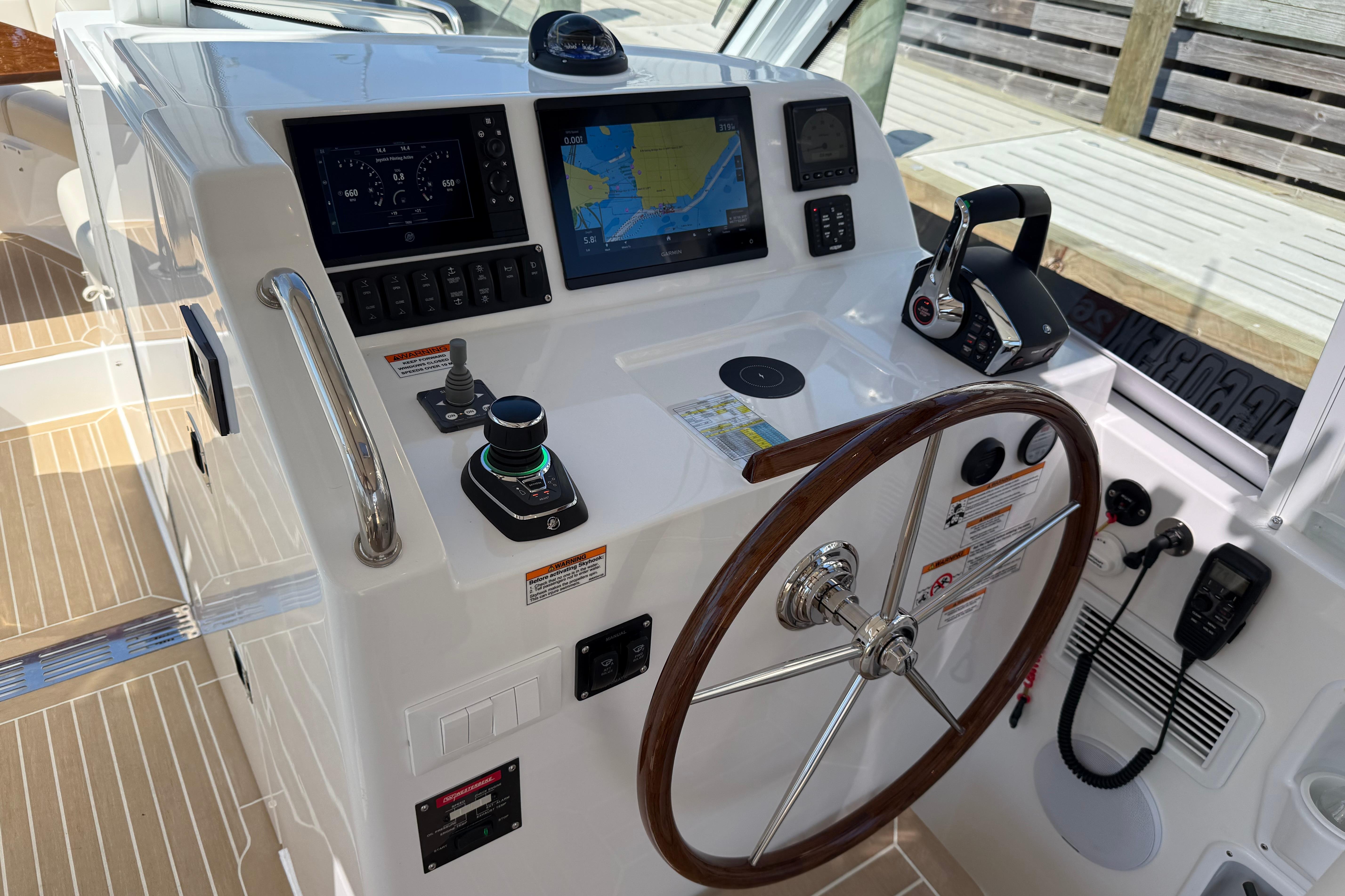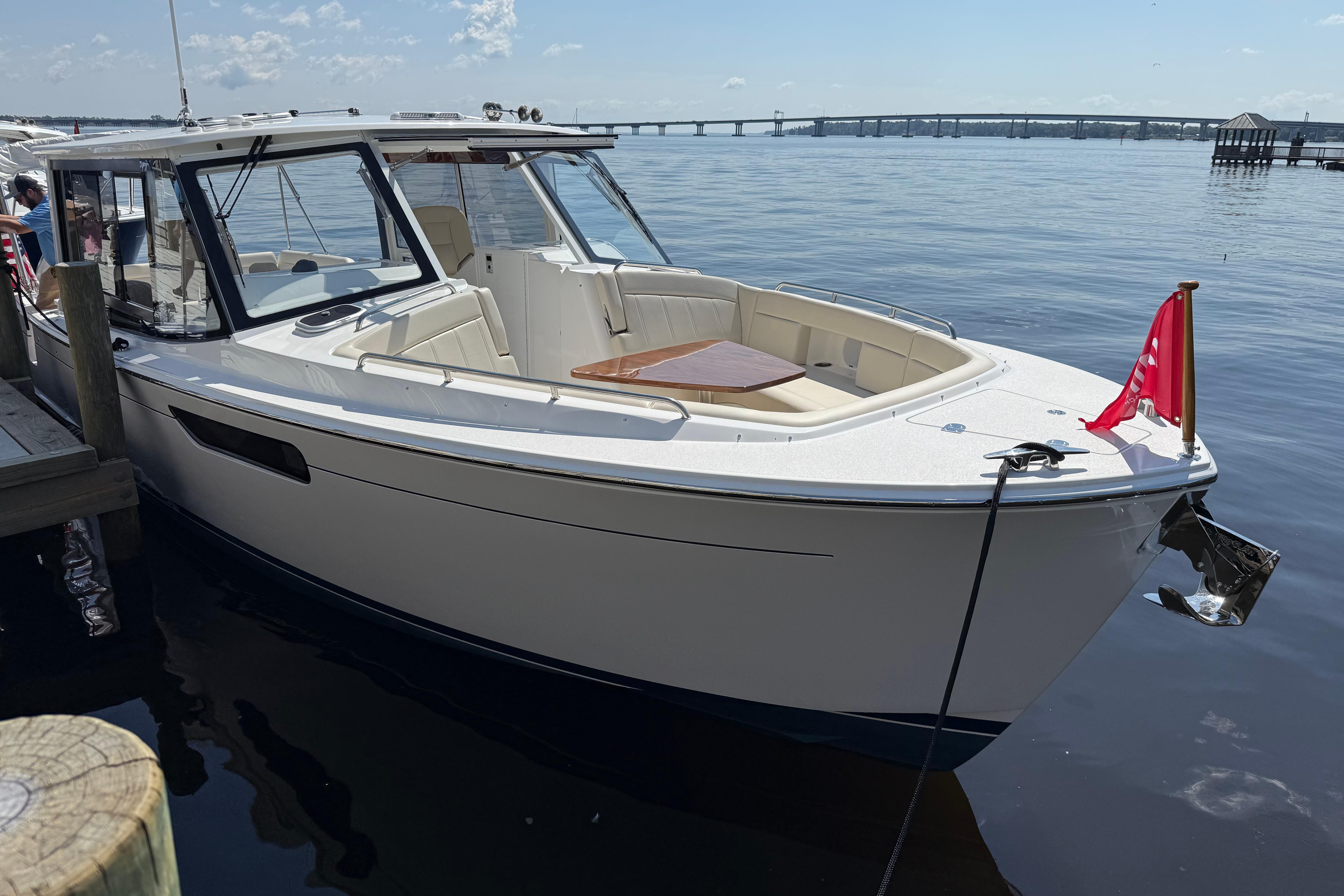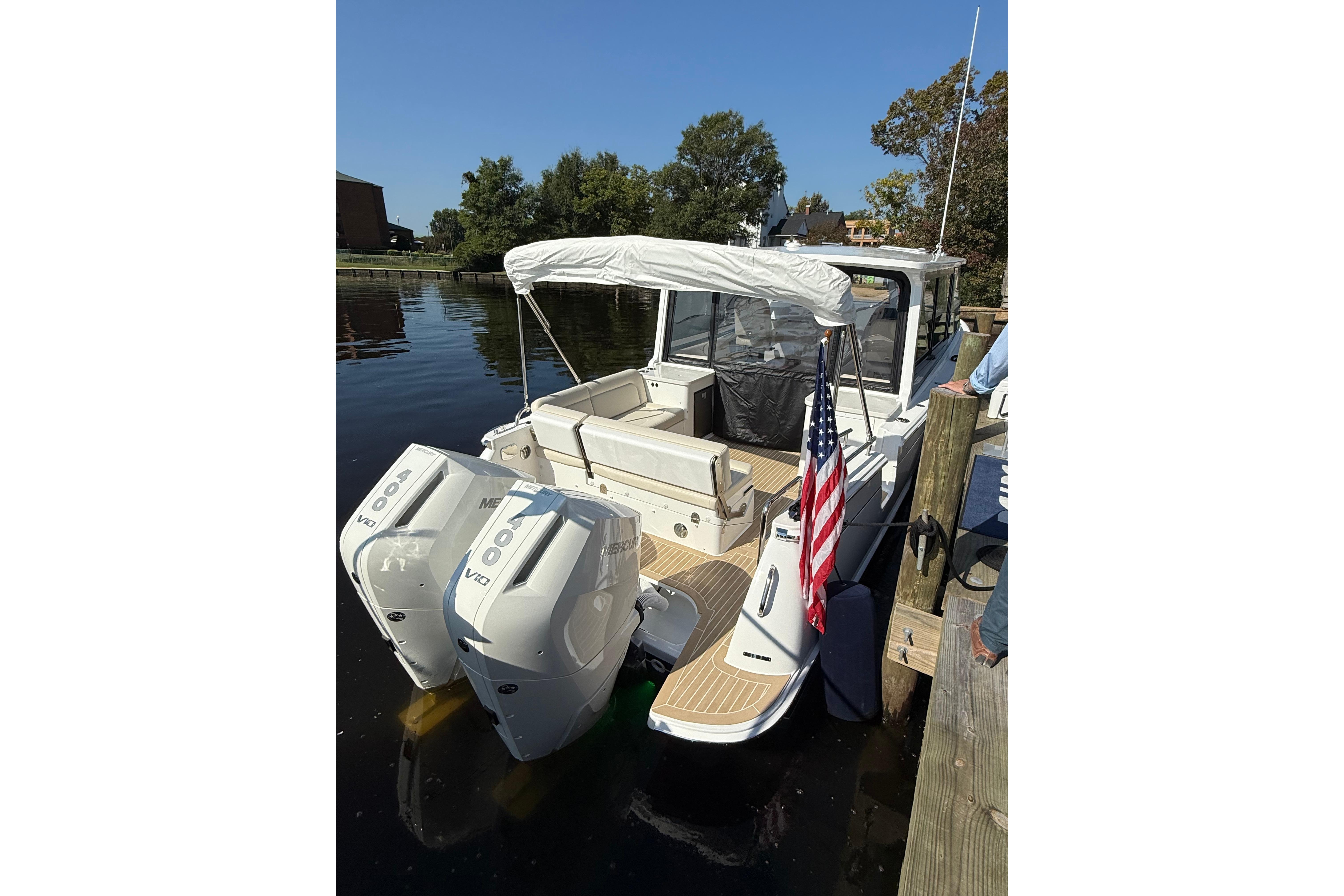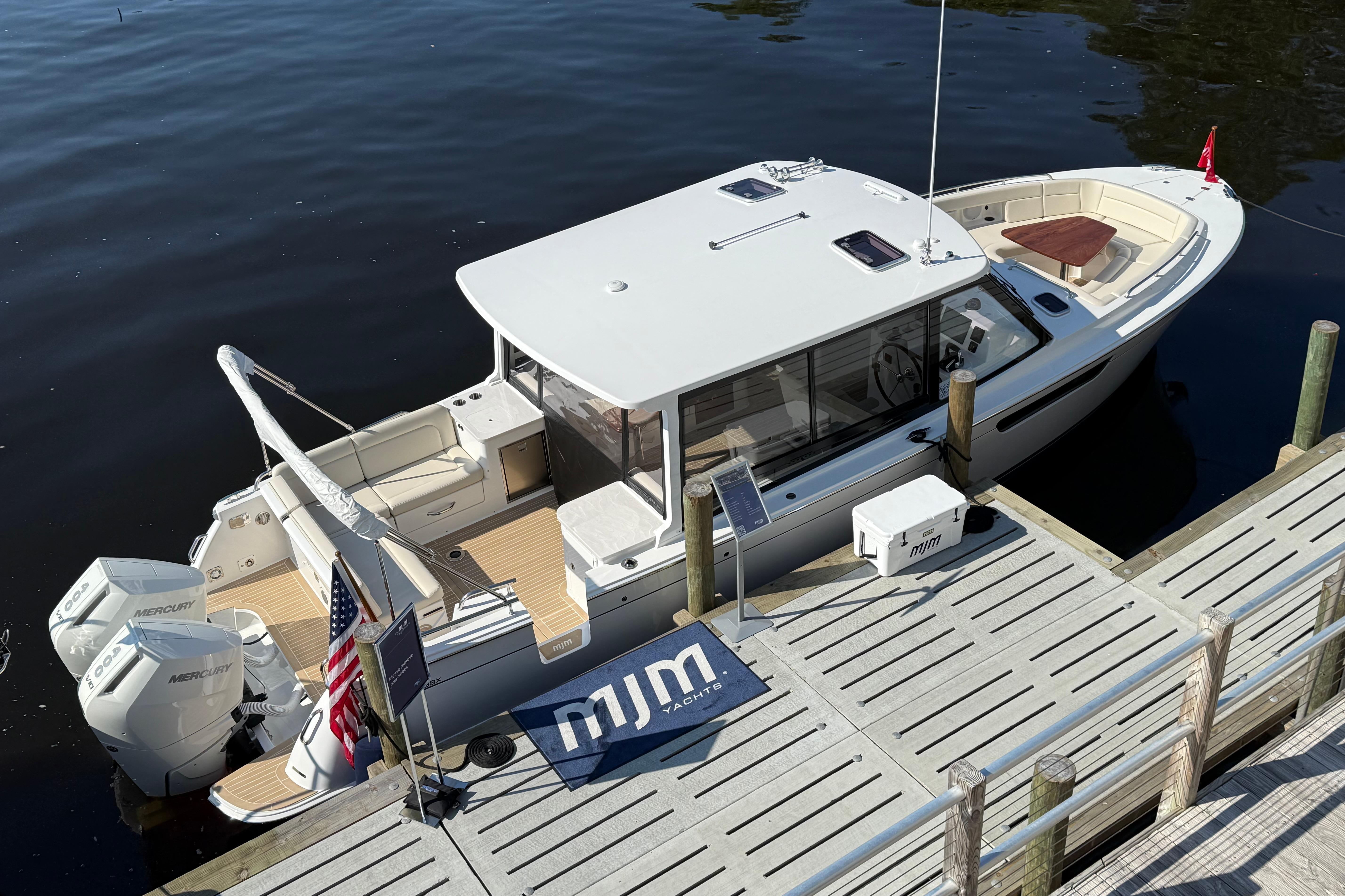 Just Arrived. The MJM 38X is a luxurious day yacht that combines sleek and contemporary Downeast style w/ exceptional performance making her the best performing day yacht in her class. Features include Joystick Piloting, upgraded Mercury 400 Verado power, Air Conditioning, Generator and a Bow Thruster. the 38X is built with an unmatched soft ride. The shallow draft and low bow rise of the 38X make her all the more suitable for enjoyment in our shallow southern rivers and creeks.