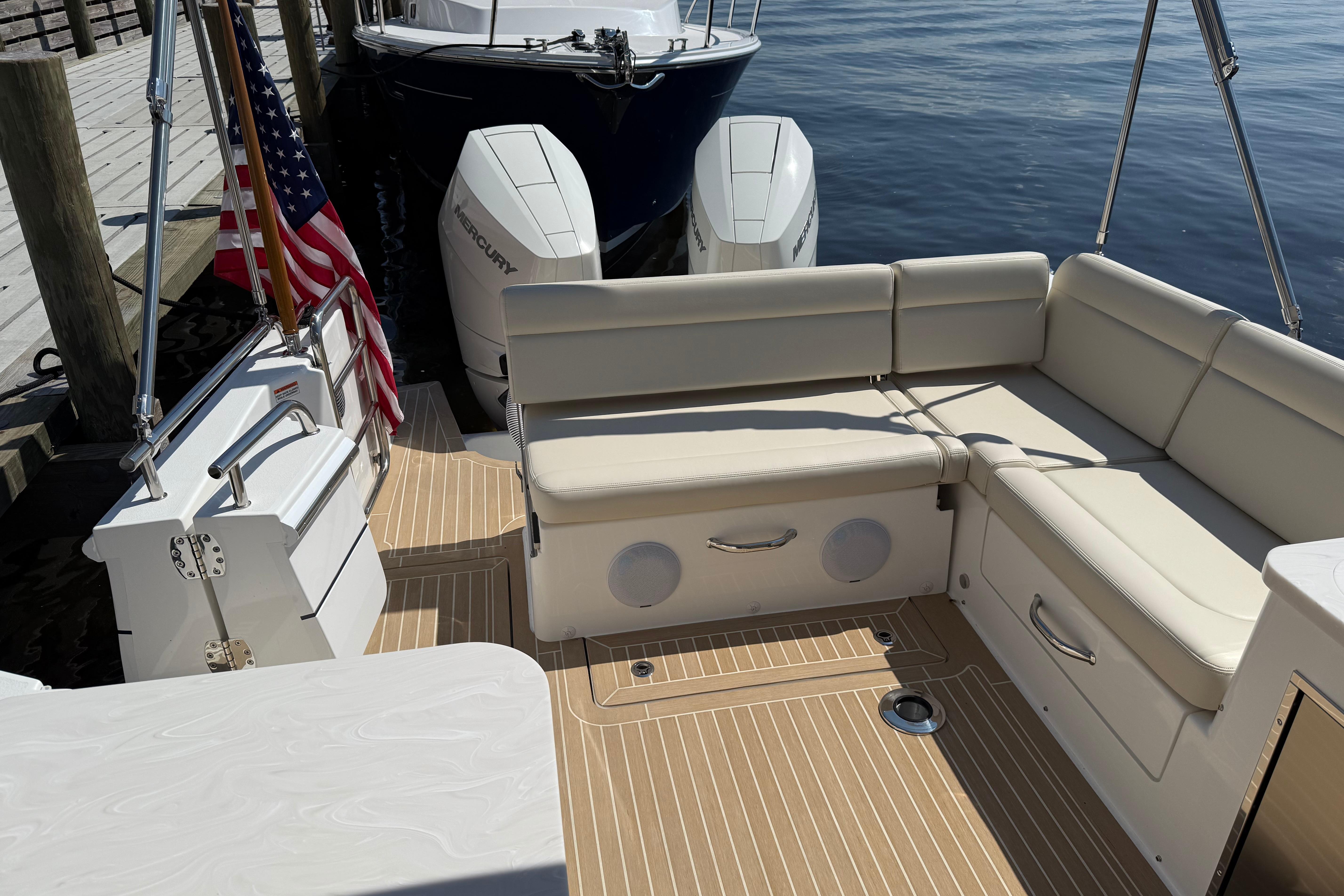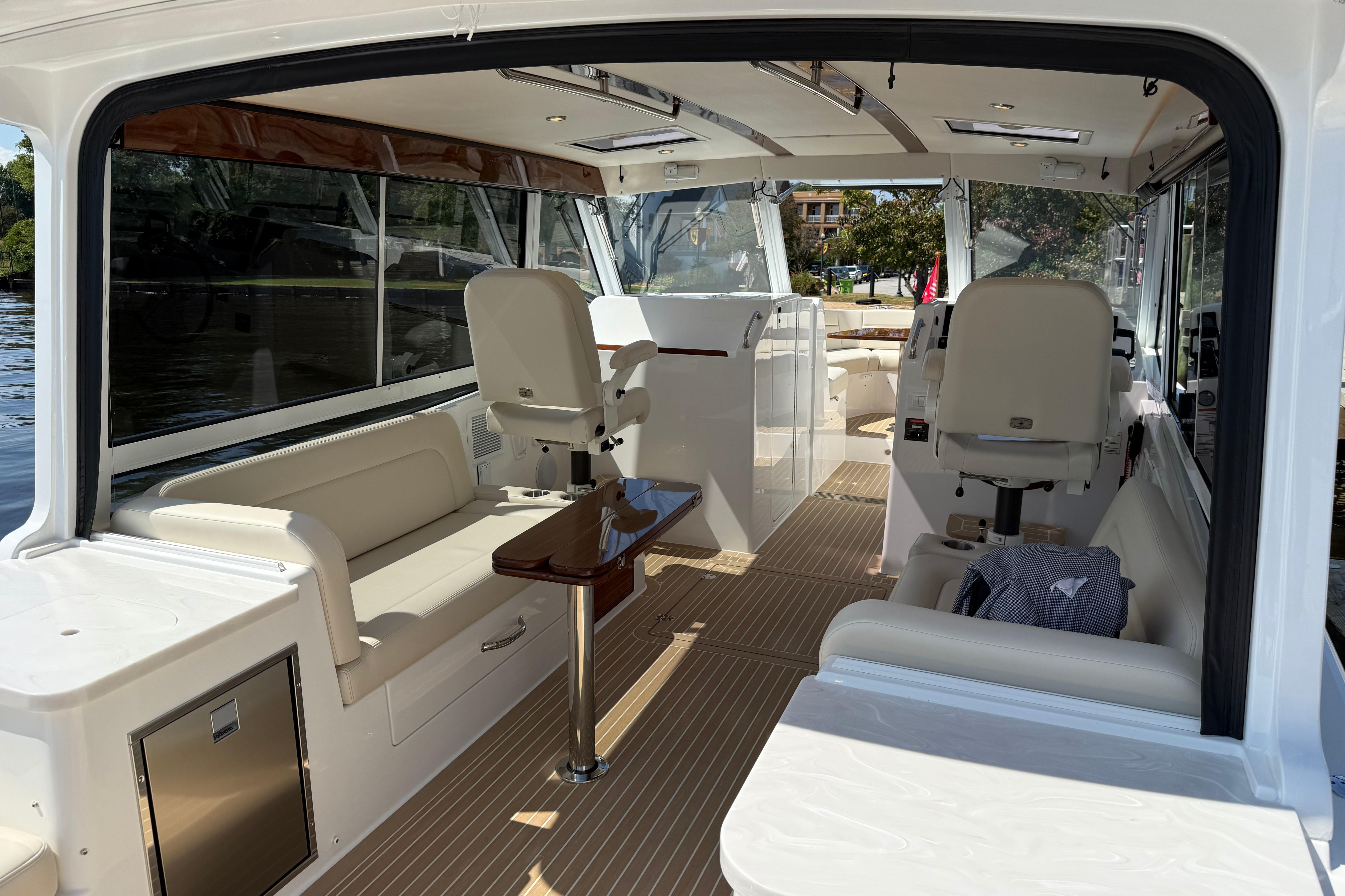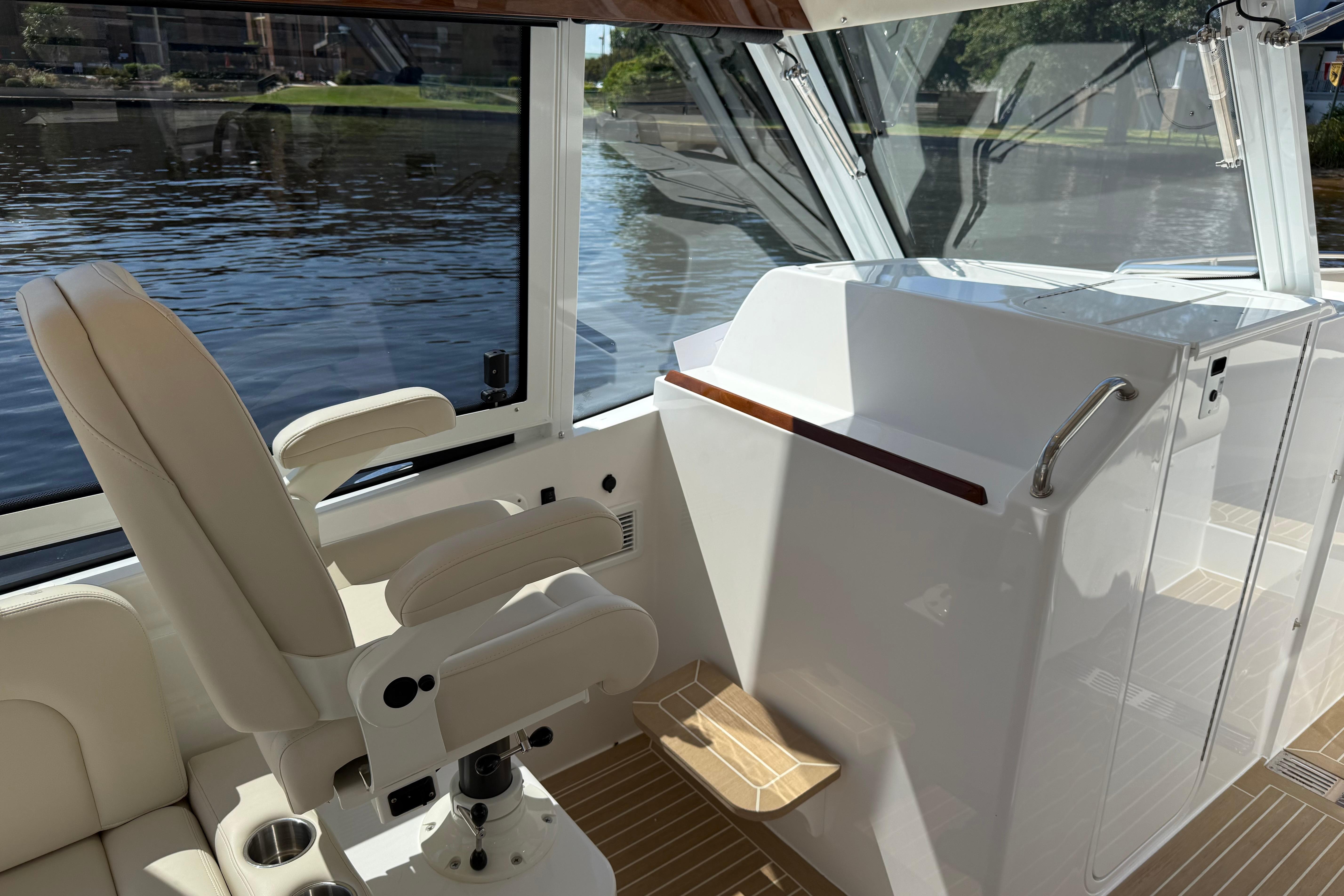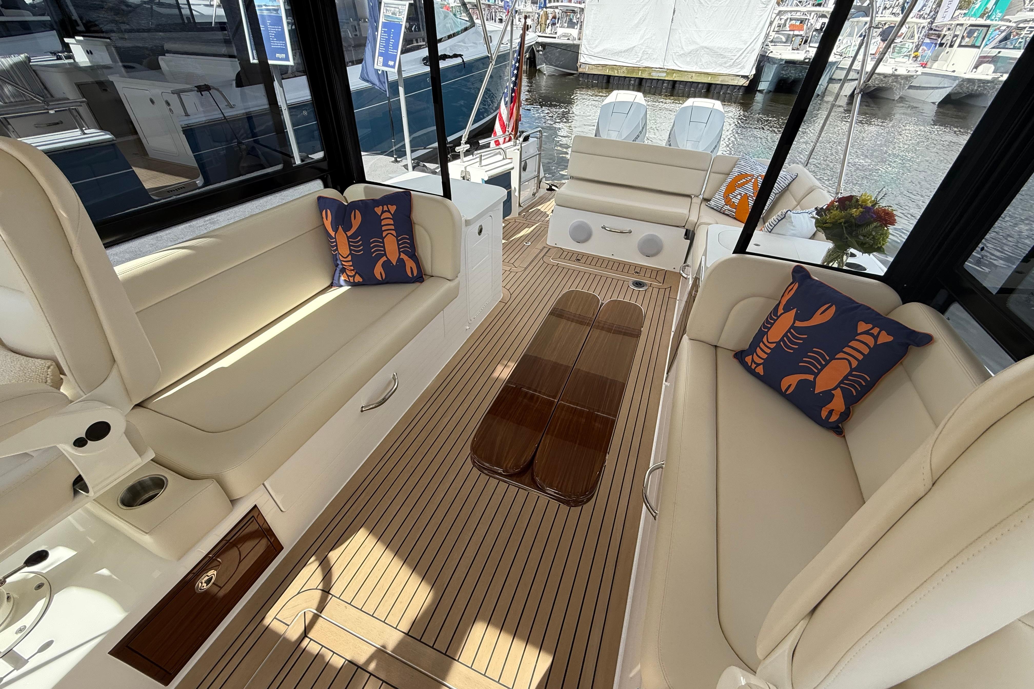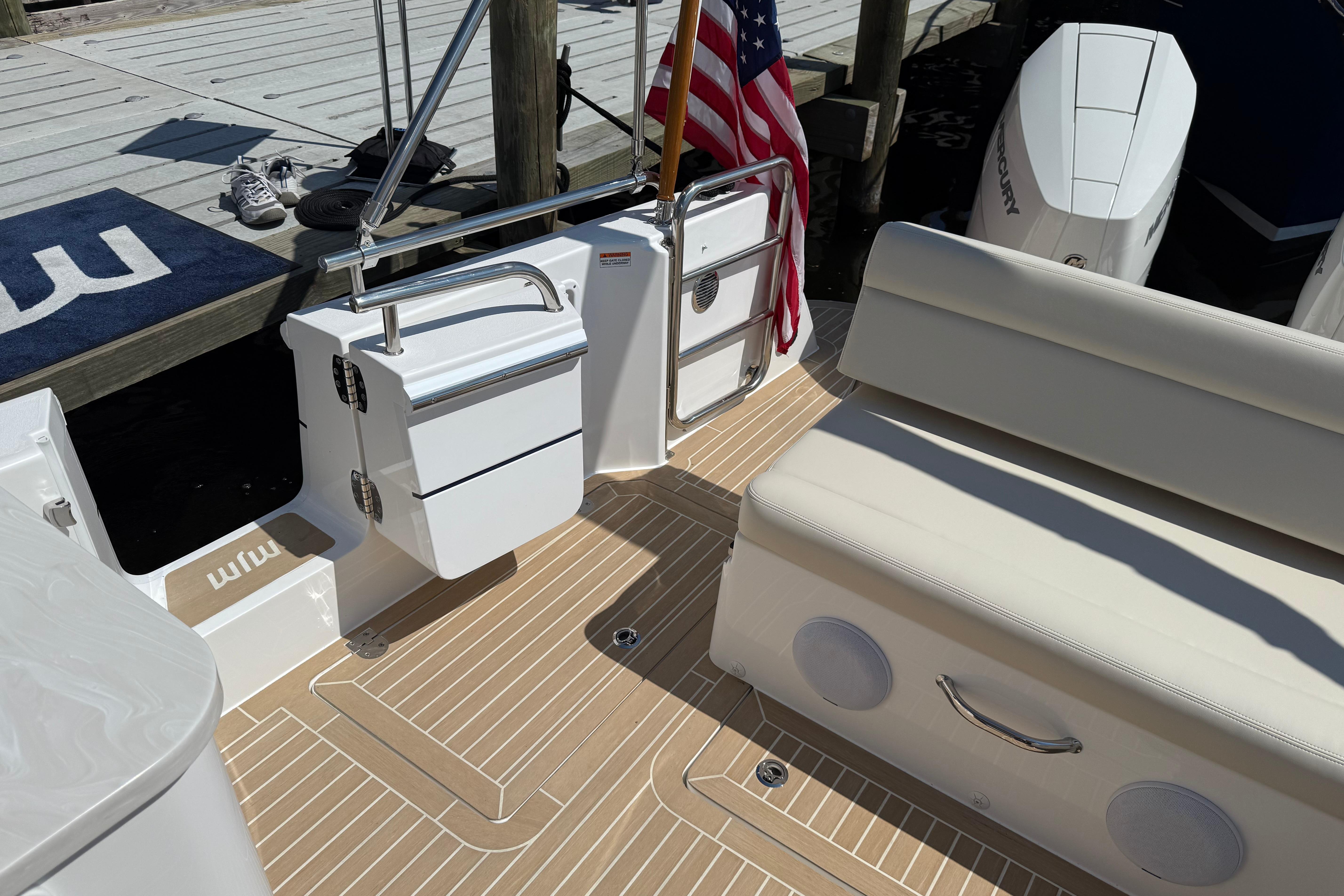 Just Arrived. The MJM 38X is a luxurious day yacht that combines sleek and contemporary Downeast style w/ exceptional performance making her the best performing day yacht in her class. Features include Joystick Piloting, upgraded Mercury 400 Verado power, Air Conditioning, Generator and a Bow Thruster. the 38X is built with an unmatched soft ride. The shallow draft and low bow rise of the 38X make her all the more suitable for enjoyment in our shallow southern rivers and creeks.