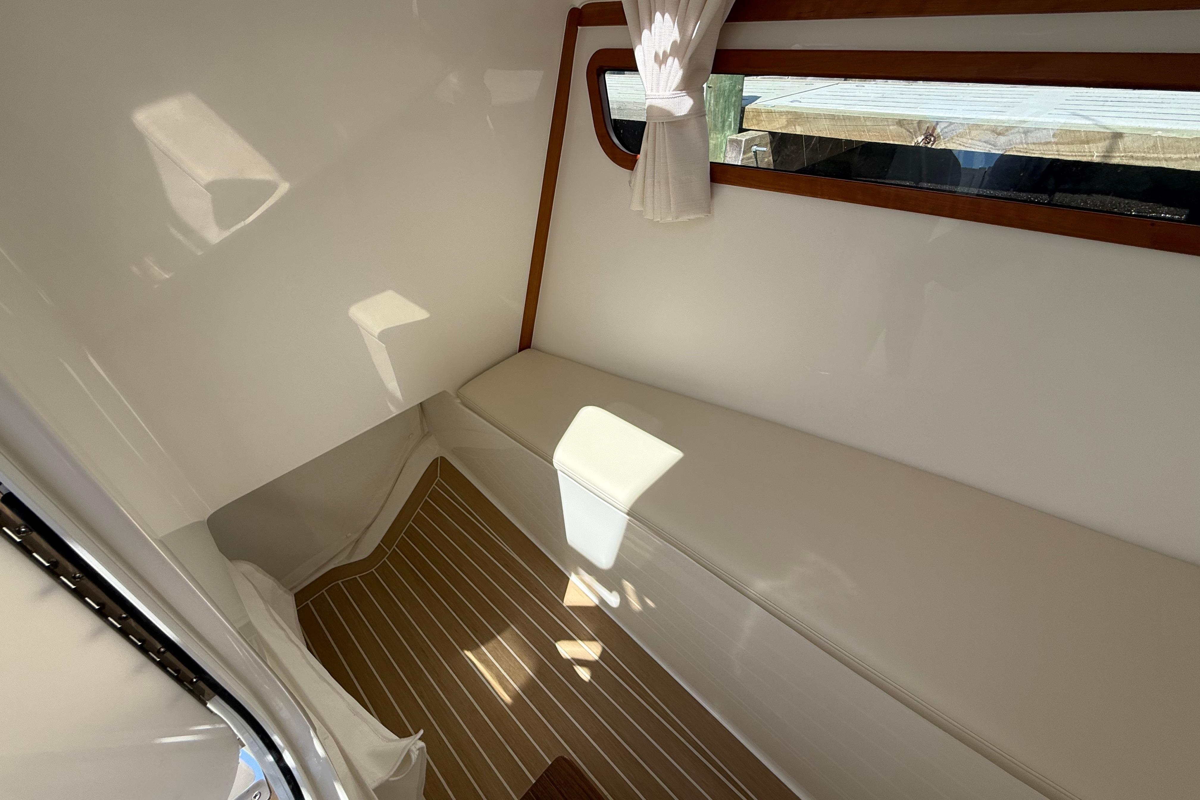- Indoor/outdoor pilothouse settees convert to sleep two