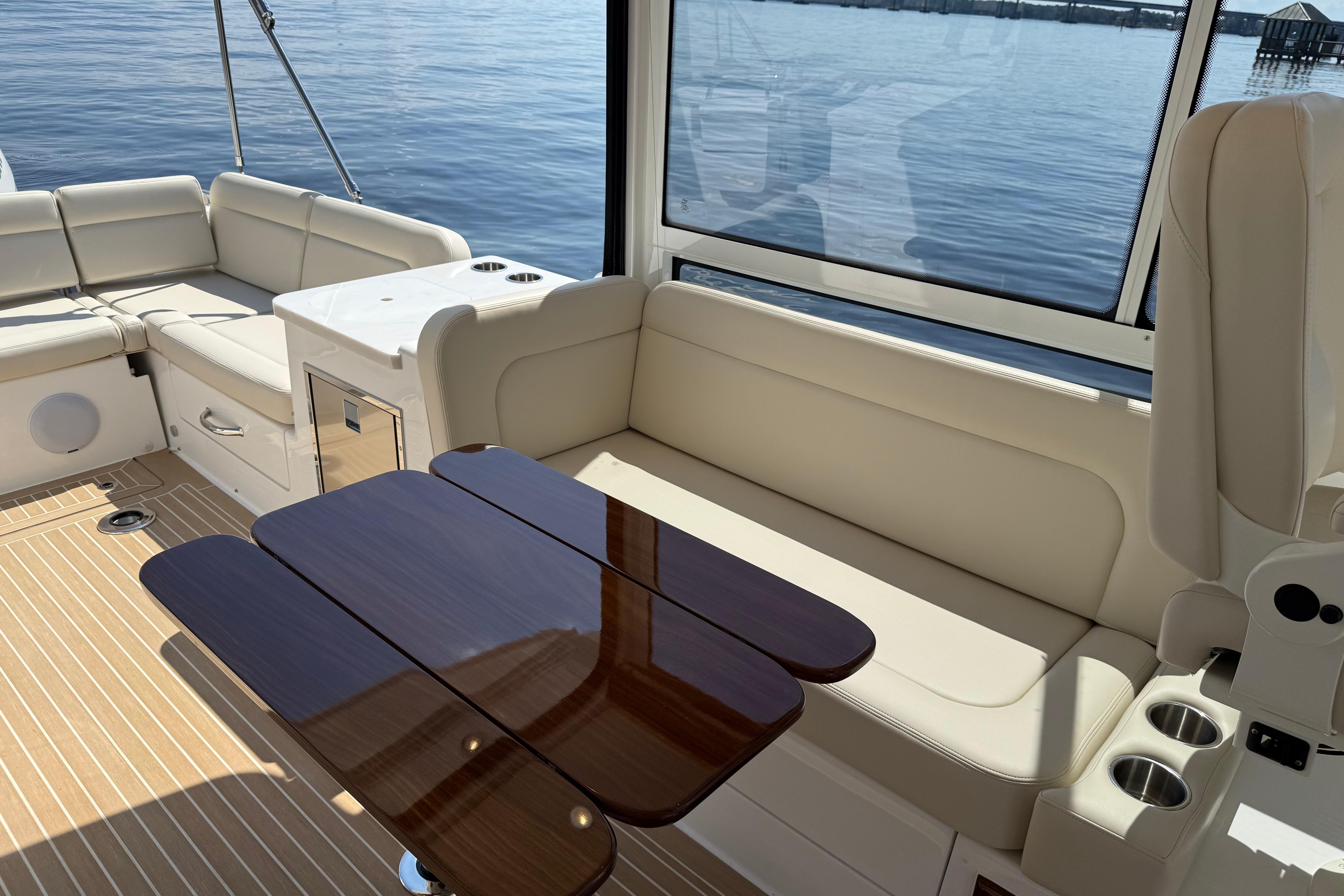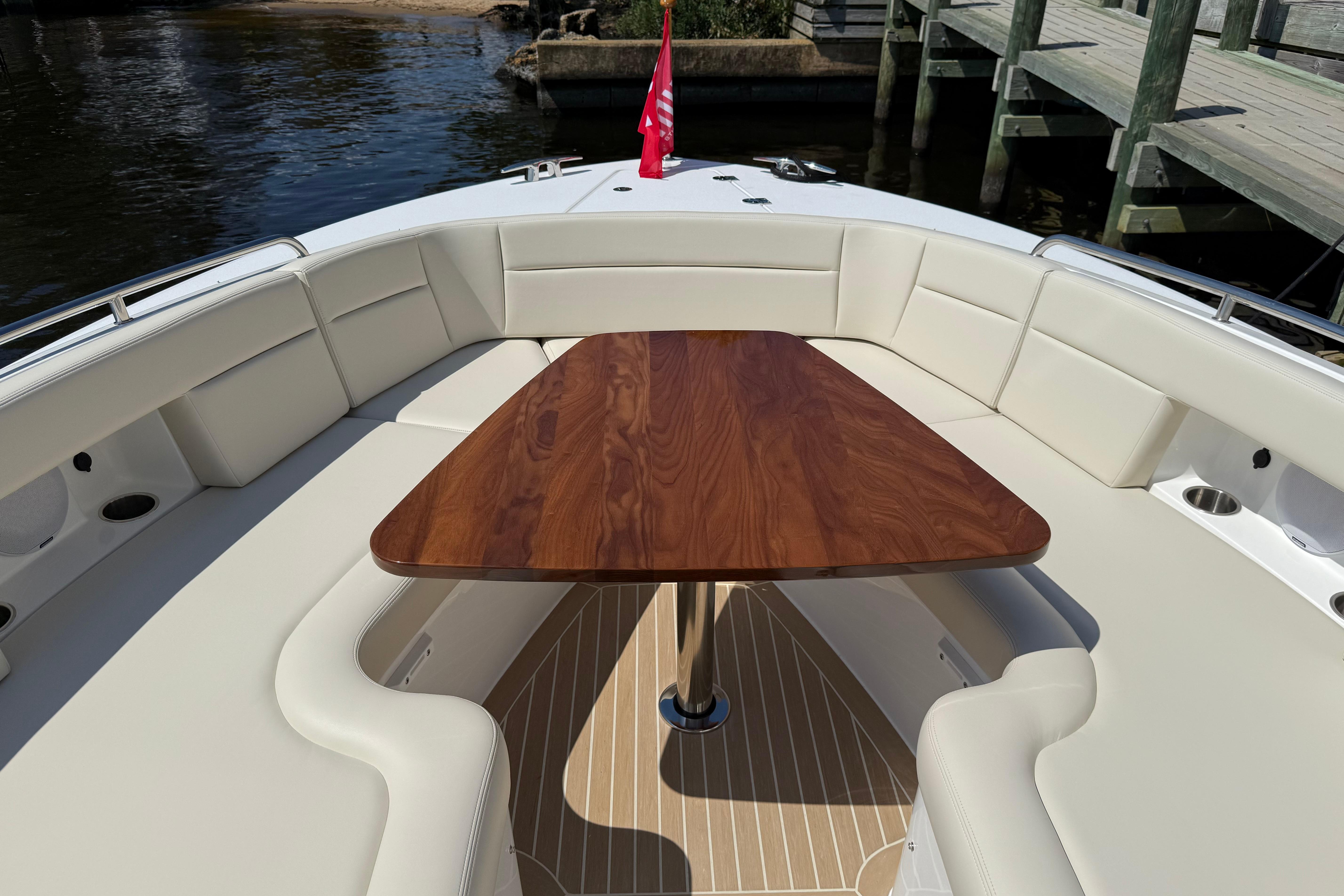 OPTIONS INCLUDE: Cockpit Cover, Bow Table w/Filler Cushion, Aft Bimini Top, Rod/Cupholders, Reverso Flush, Refrigerator/Freezer Drawer, Bow Thruster and Underwater Lights.