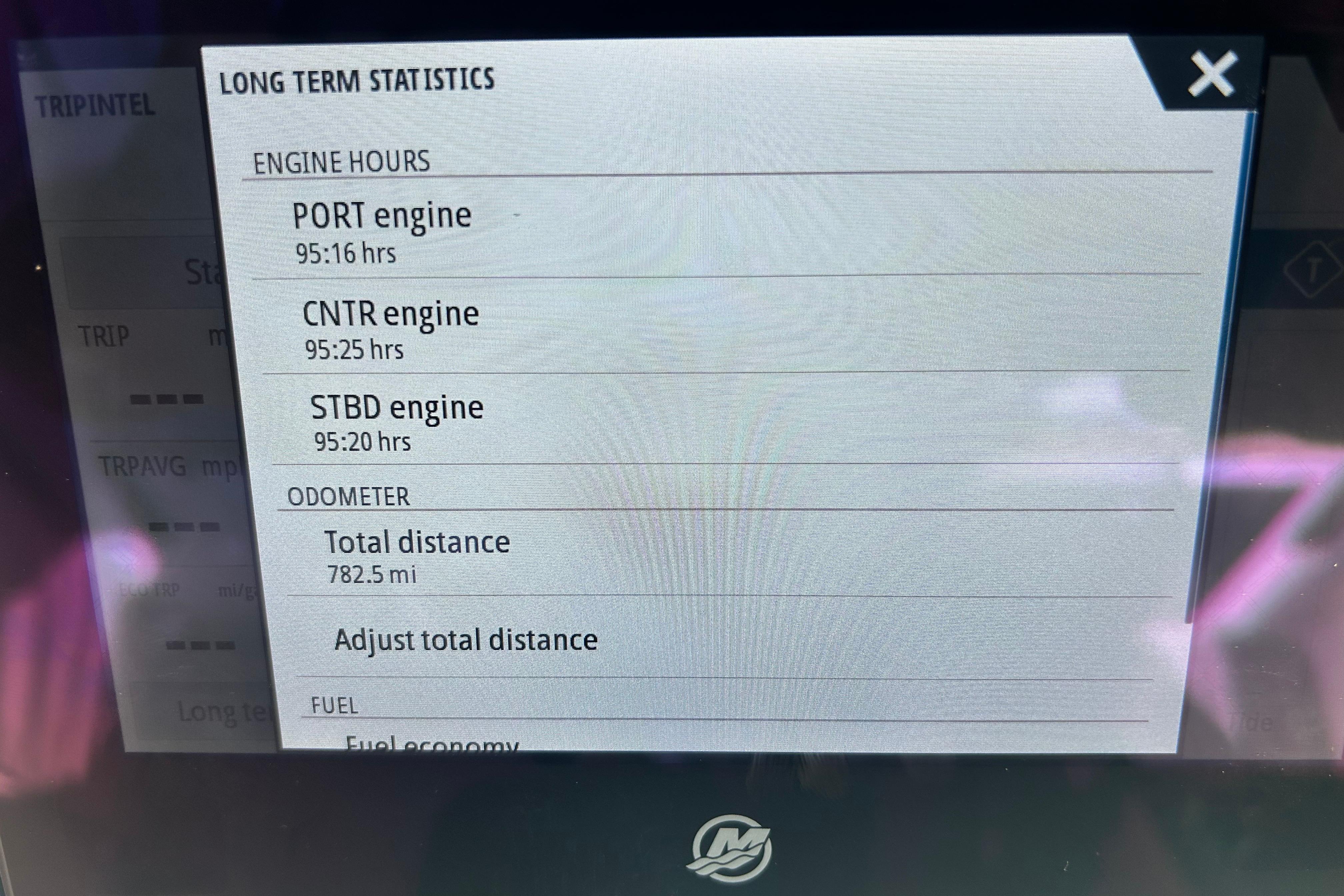 Total Power: 400|horsepower Engine Brand: Mercury Year Built: 0 Engine Model: Verado Engine Type: Outboard Engine/Fuel Type: unleaded Engine Hours: 95 Engine Power: 400|horsepower
