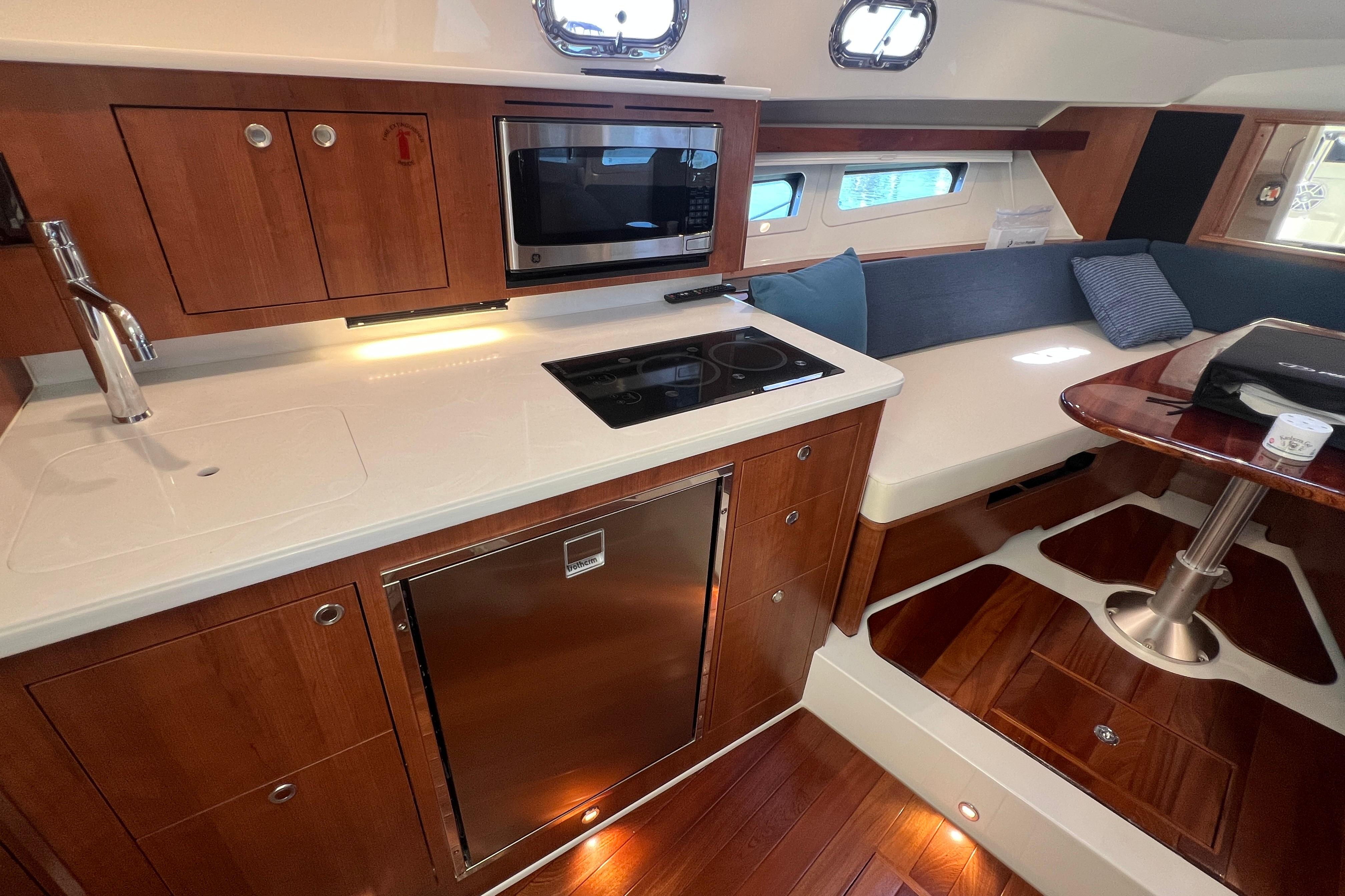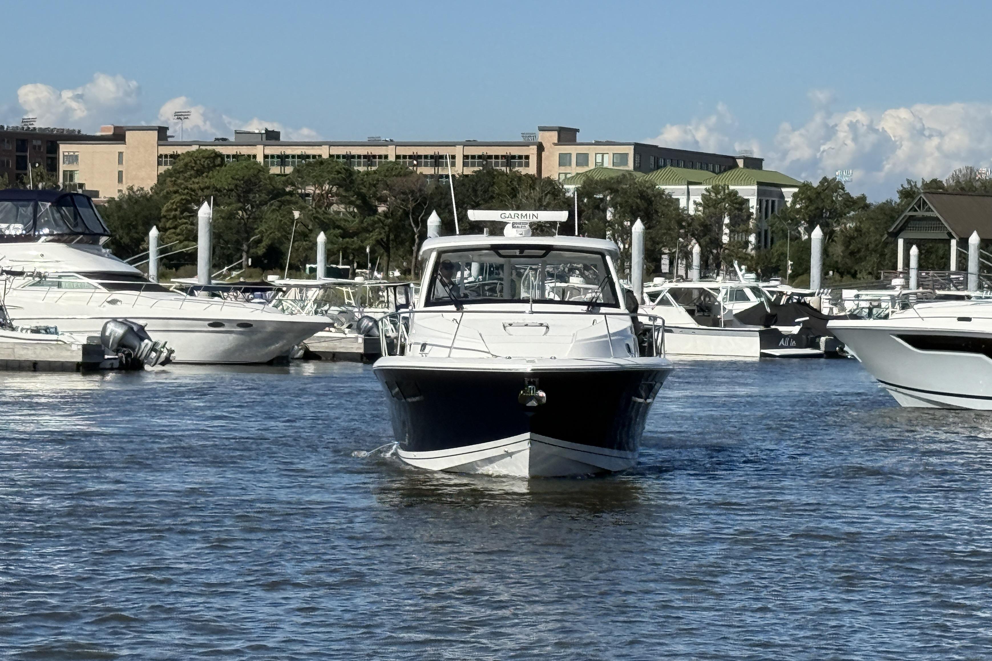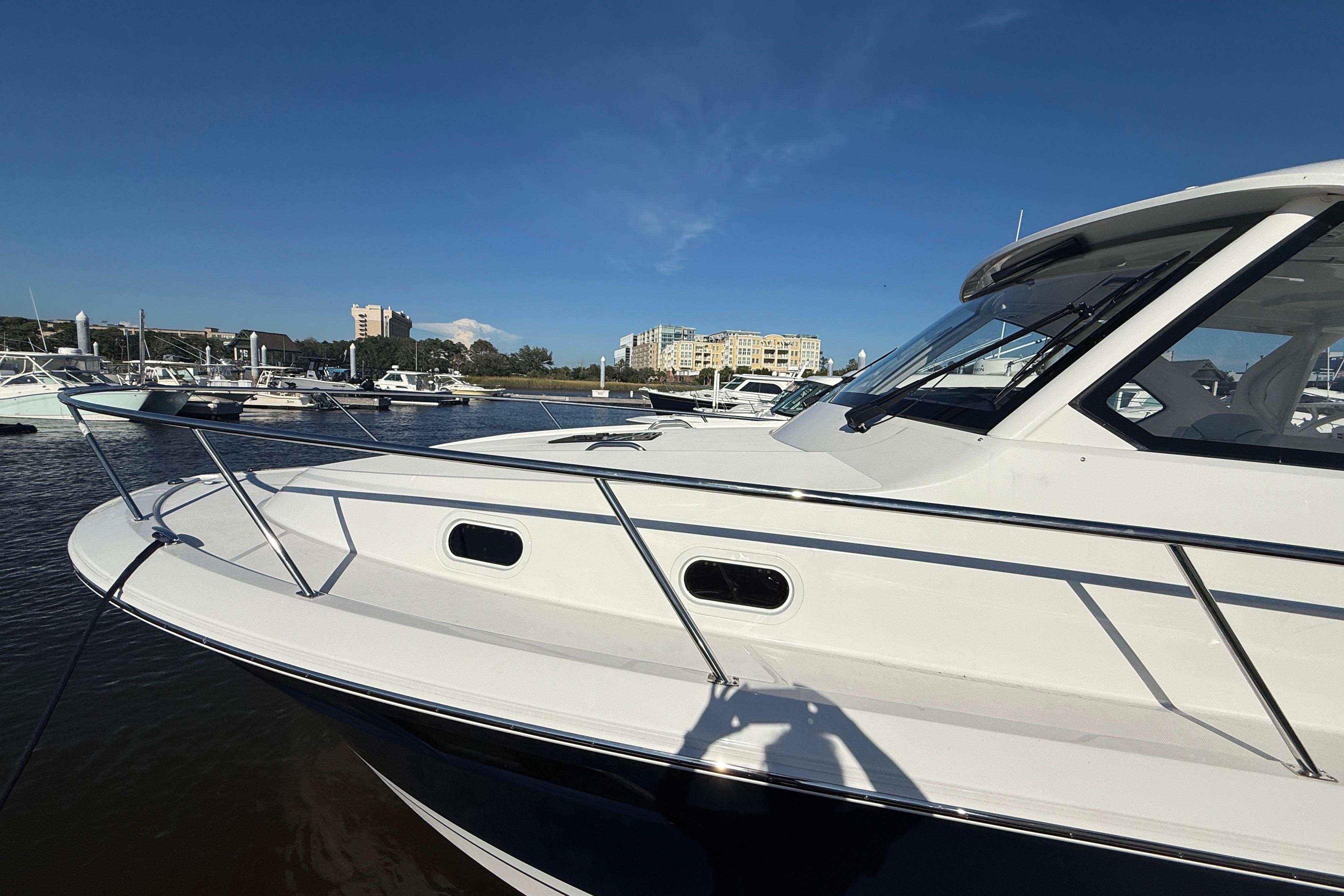 The OS 355 encompasses the winning formula you’ve come to expect from Pursuit. A single-piece optically clear windshield, updated exterior fabrics and finishes with innovative seating arrangements, give you every reason to dive into a brand new offshore. The increased natural light throughout the stylish hull-side windows, stainless steel refrigerator and electrically actuated convertible berth/ dinette are a few of the cabin features that punctuate this model with yacht caliber appointments.