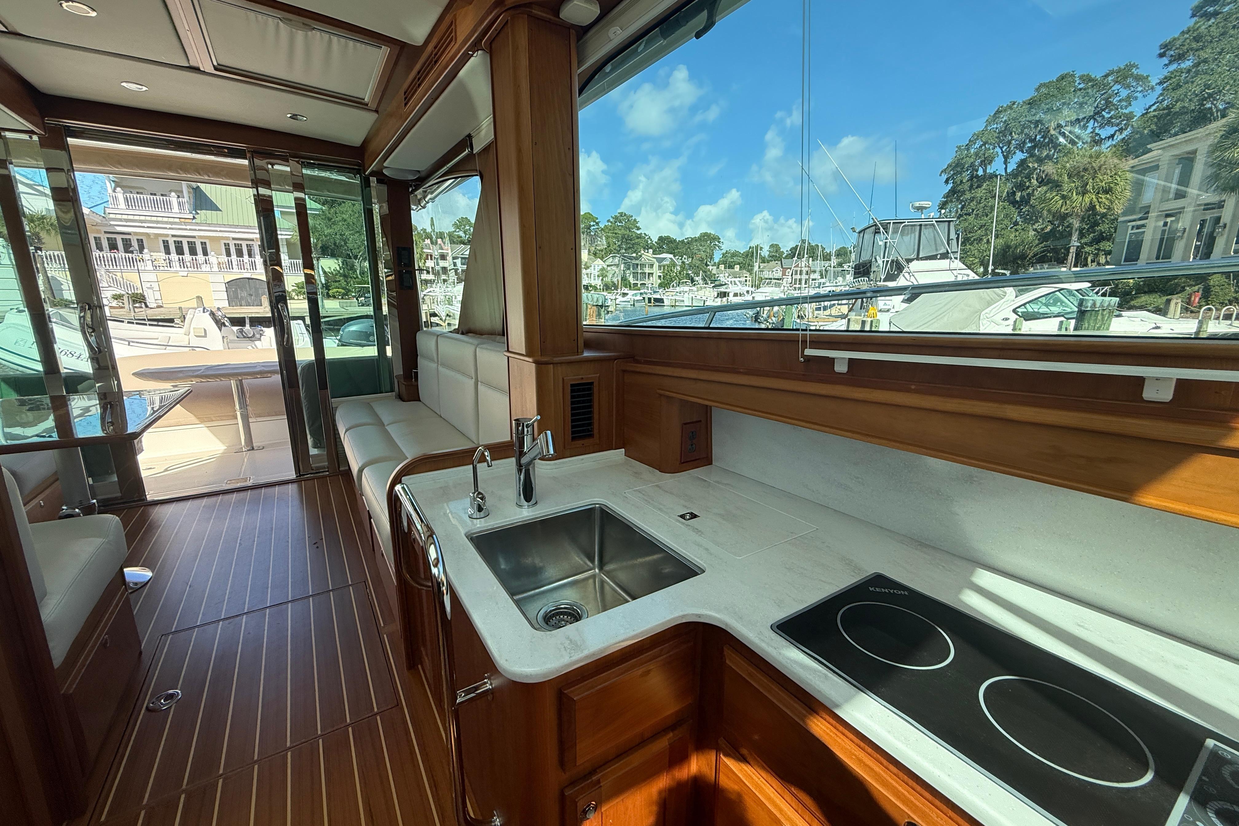 - UltraLeather Upholstery on Stidd seats, Lower Lounge and Main Salon Settees color Whitewater
